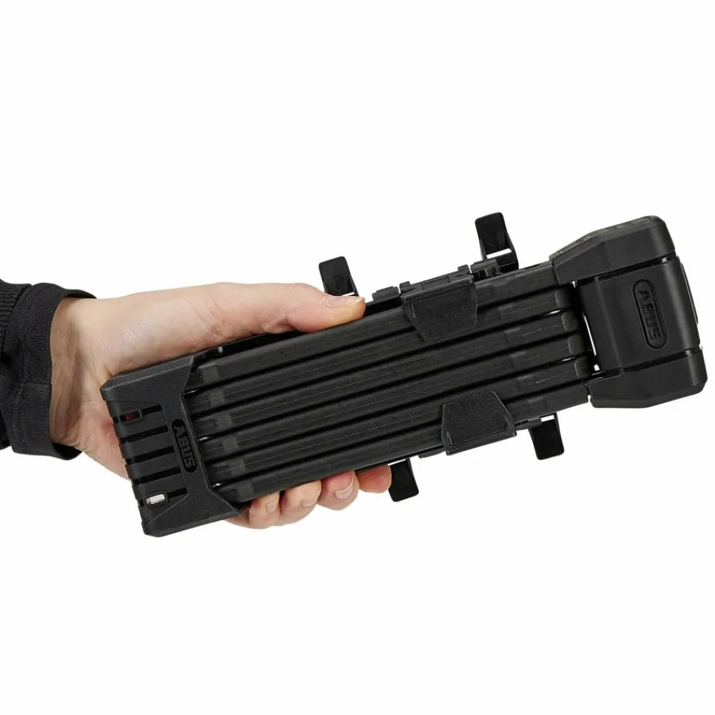 Auch der Umfang dieses Abus-Schlosses lässt aufhorchen: Ganze 94 cm Schließumfang stehen dir beim Bordo 6200K zur Verfügung. Mit diesem großzügigen Umfang findest du schnell eine geeignete Stelle zum Anschließen – auch bei sperrigen Objekten. Für den Transport faltest du das Schloss wie einen Zollstock auf eine kompakte Größe zusammen. Dann verstaust du es in der mitgelieferten Schlosshalterung, die du einfach am Fahrradrahmen montieren kannst. In der Halterung findest du zudem ein praktisches Fach für den Schlüssel.