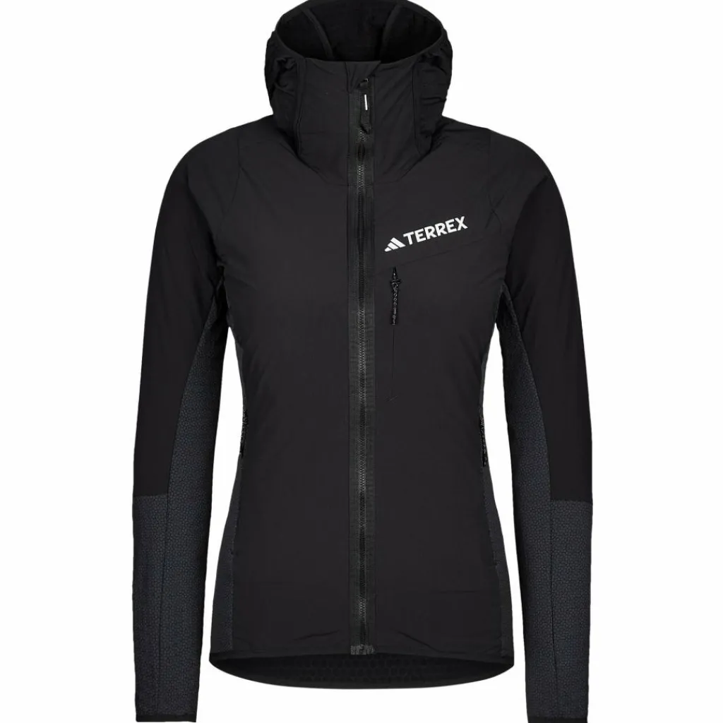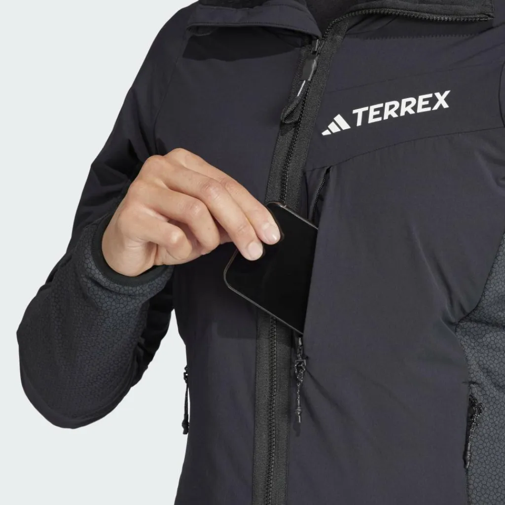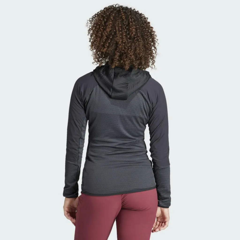 Bergsteigerinnen aufgepasst: Die Terrex Techrock Hooded Wind Fleece Jacket verfügt über windabweisende Einsätze und punktet außerdem mit schnellem Feuchtigkeitstransport und hoher Elastizität.