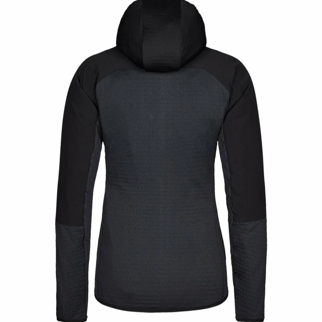 Die schmale Passform unterstützt den schnellen Feuchtigkeitstransport und sorgt dafür, dass die Jacke bei starkem Sturm oder Regen gut unter eine Außenjacke passt. Die Kapuze sitzt dank Elastik-Einfassungen selbst bei windigem Wetter sicher auf dem Kopf. Bei Bedarf passt die Kapuze auch gut unter einem Helm. Neben den beiden Reißverschluss-Taschen an den Seiten verfügt die Jacke über eine praktische Brusttasche. Diese ist auch mit angelegtem Klettergurt oder Rucksack frei zugänglich.