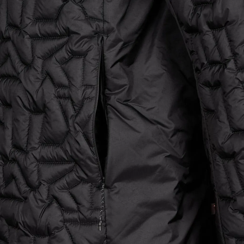 Das Außenmaterial aus recyceltem Nylon hat einen angenehmen Griff und ist gleichzeitig schön strapazierfähig. Dank wasserabweisender Imprägnierung hält die Jacke auch mal einem kurzen Regenschauer stand, ohne sofort zu durchnässen. Doch selbst wenn die Jacke im Starkregen mal so richtig feucht geworden ist, spendet die nässeunempfindliche Primaloft Rise Loose Fill-Isolierung noch immer wohlige Wärme. Neben ihrer hohen Isolationsleistung ist die neu entwickelte Füllung außerdem angenehm leicht und kompressionsbeständig.