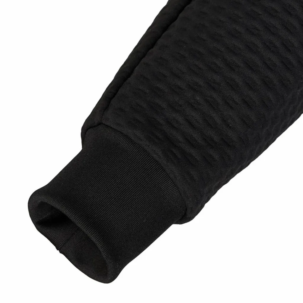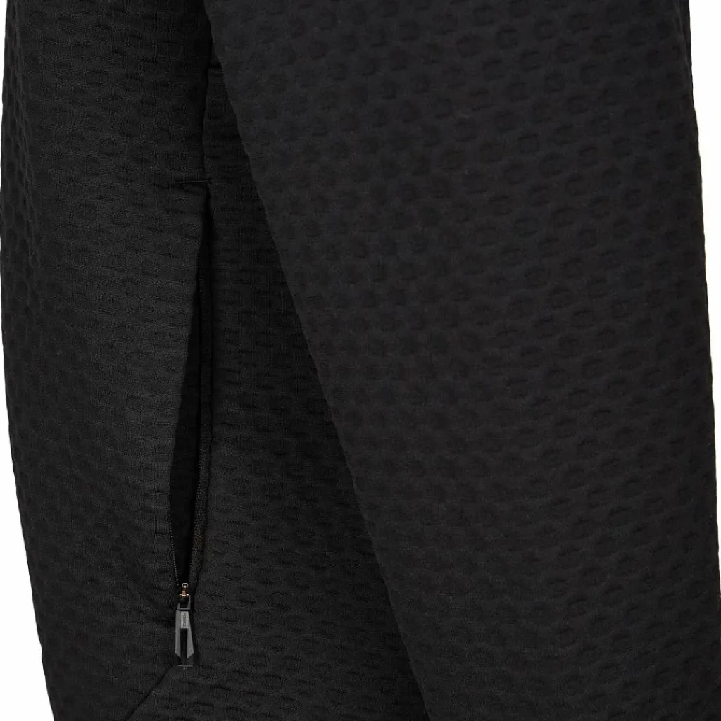 Wenn du mit einem Rucksack unterwegs bist, profitierst du außerdem von den nach hinten versetzten Schulternähten. In dieser Position drücken oder scheuern die Nähte unter den Rucksackgurten weitaus weniger, als wenn sie direkt auf den Schultern liegen würden. Die Rippstrick-Bündchen an den Ärmeln und am Saum sorgen einen guten Sitz und einen klassischen Sweater-Look. An den Ärmelbündchen sind außerdem Daumenschlaufen eingearbeitet, so bleiben deine Handrücken angenehm warm und die Ärmel an Ort und Stelle. Zwei Einschubtaschen mit Reißverschluss bieten kleinen Gegenständen eine sichere Bleibe.
