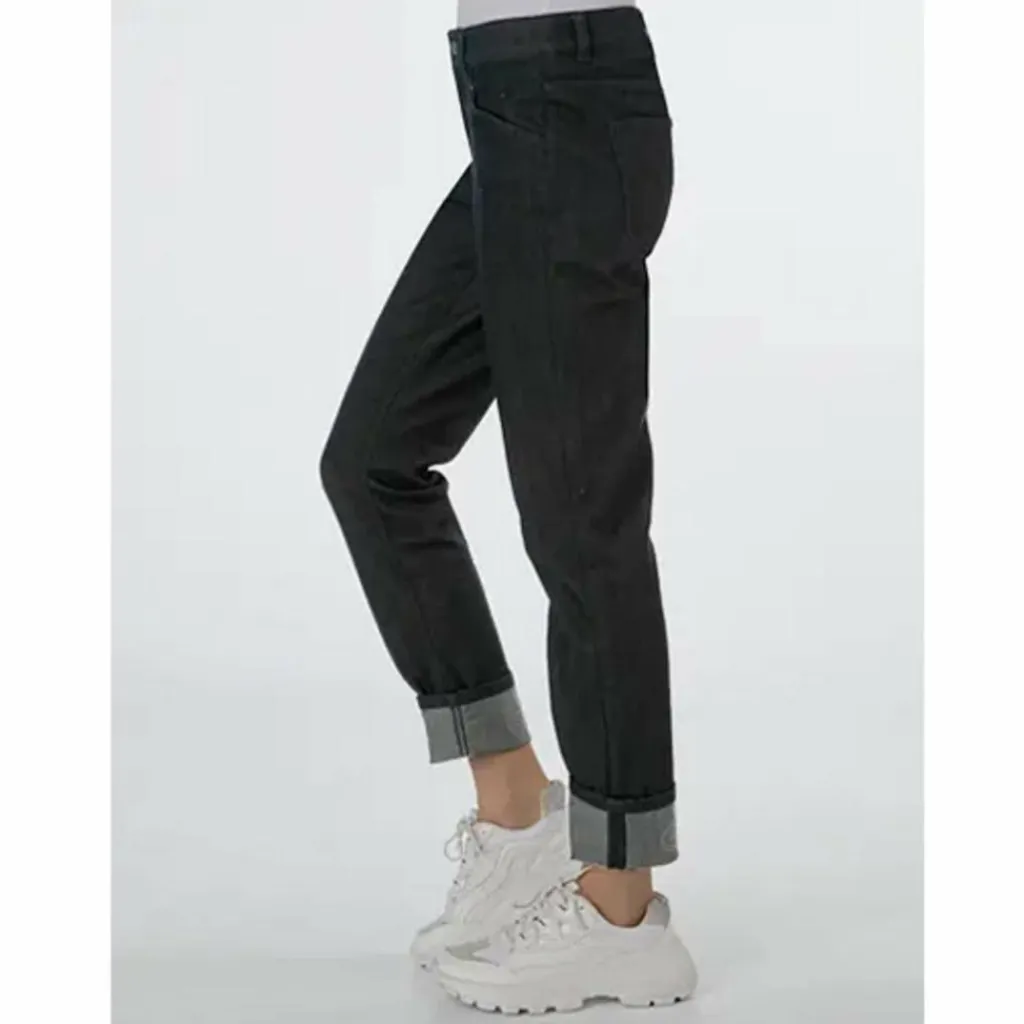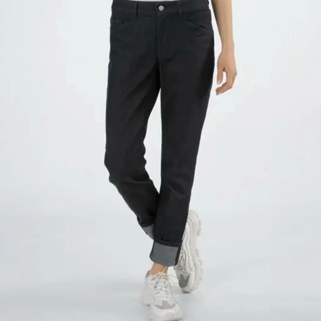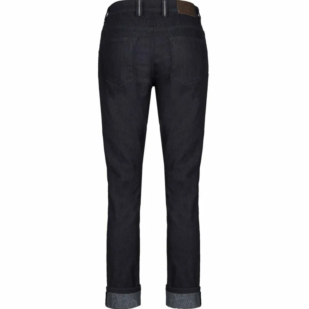Diese Hose hat so manch schöne Überraschung zu bieten: Das Mischgewebe ist dehnbar und komfortabel, außerdem weist es dank ecorepel Wasser und wässrigen Schmutz ab. Auch der Schnitt ist radspezifisch: Der Bund ist hinten leicht höher geschnitten; die Gesäßtaschen sind so angeordnet, dass sie auf dem Sattel nicht stören. Außerdem hat die Bike-Jana – Ecorepel Denim reflektierende Elemente an den richtigen (und gleichzeitig unauffälligen) Stellen.
