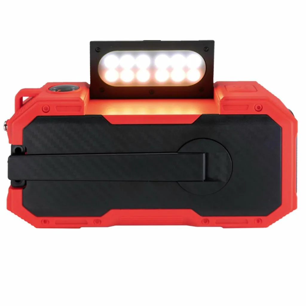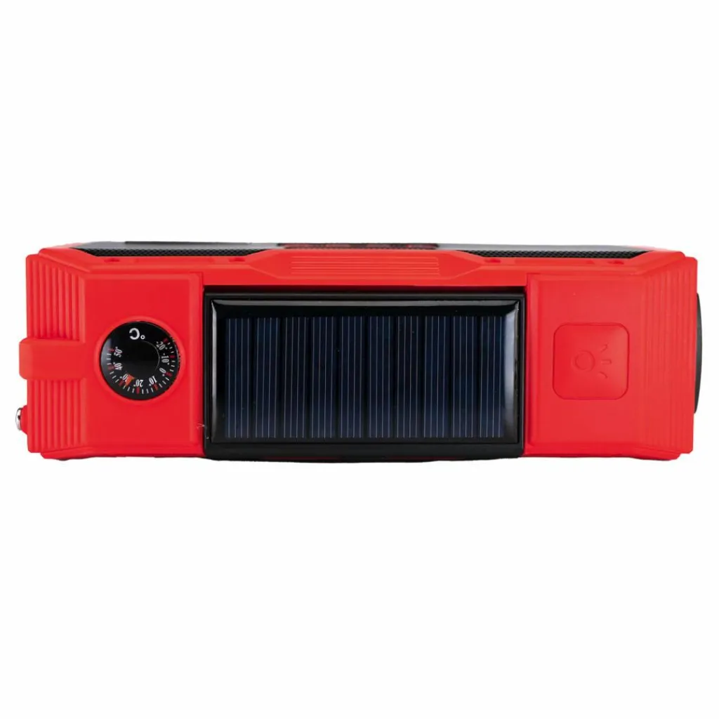 Das digitale Kurbelradio eignet sich nicht nur für Notfälle, sondern ist auch in der Gartenhütte, im Park und anderen Plätzen ohne Strom eine gute Wahl. Es besitzt einen integrierten Akku, den du per USB-Kabel, Solarmodul (integriert) oder Handkurbel laden kannst. Ein USB-Ausgang erlaubt zusätzlich das Laden anderer USB-Geräte wie deinem Handy.