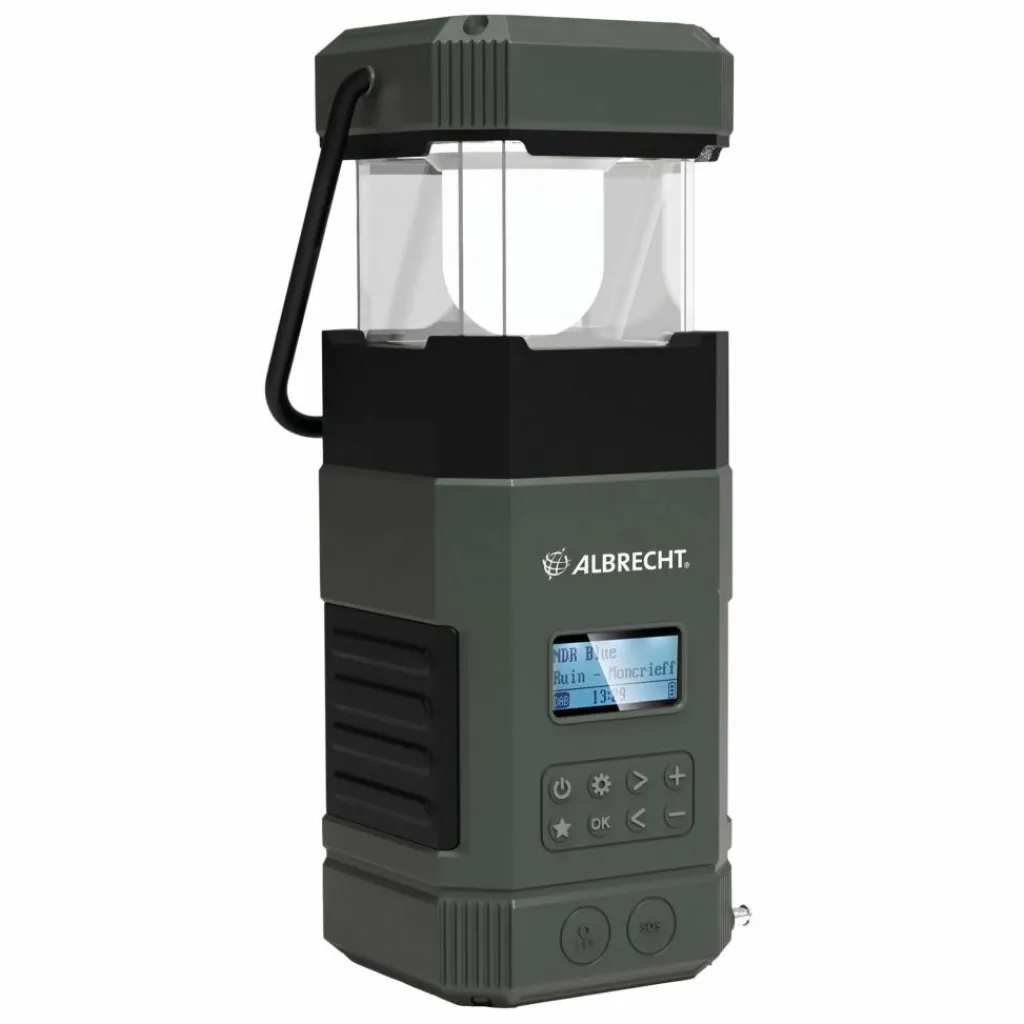 UKW und DAB+ Radio mit integriertem Akku, der per Handkurbel, Solarpanel oder USB-Anschluss geladen werden kann. Eine Laterne und Powerbankfunktion sind ebenfalls an Bord.