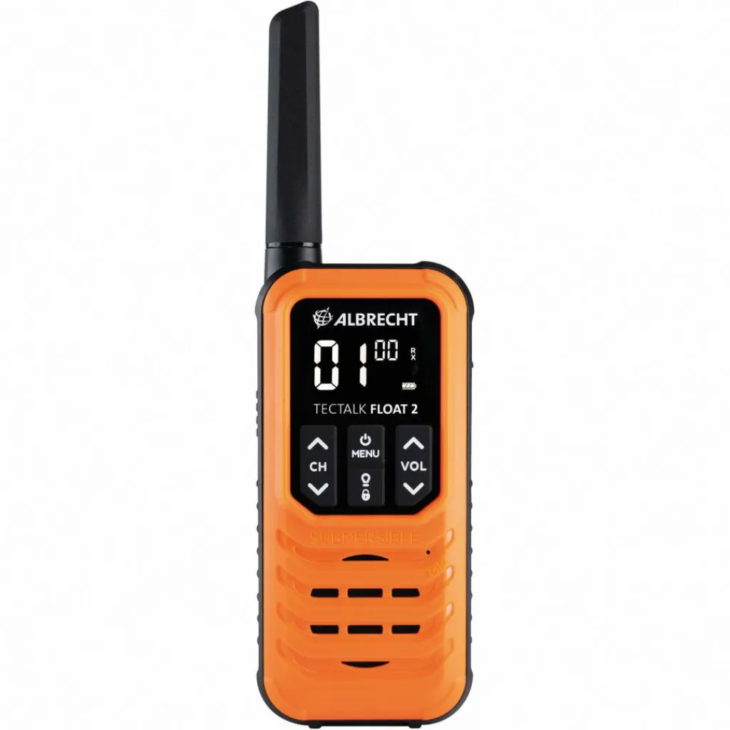 Wassersportler kennen das Problem: Einmal nicht aufgepasst, verschwindet ein Teil in den Tiefen des Gewässers. Bei sicherheitsrelevanten Ausrüstungsgegenständen darf ein solcher Fehler nicht passieren. Albrecht beugt vor und stattet das Funkgerät nicht nur mit einer Klemme und Öse aus, sondern macht es gleichzeitig schwimmfähig. Bei Kontakt mit Wasser hilft eine blinkende Signalleuchte, dich und das Gerät schneller zu orten.