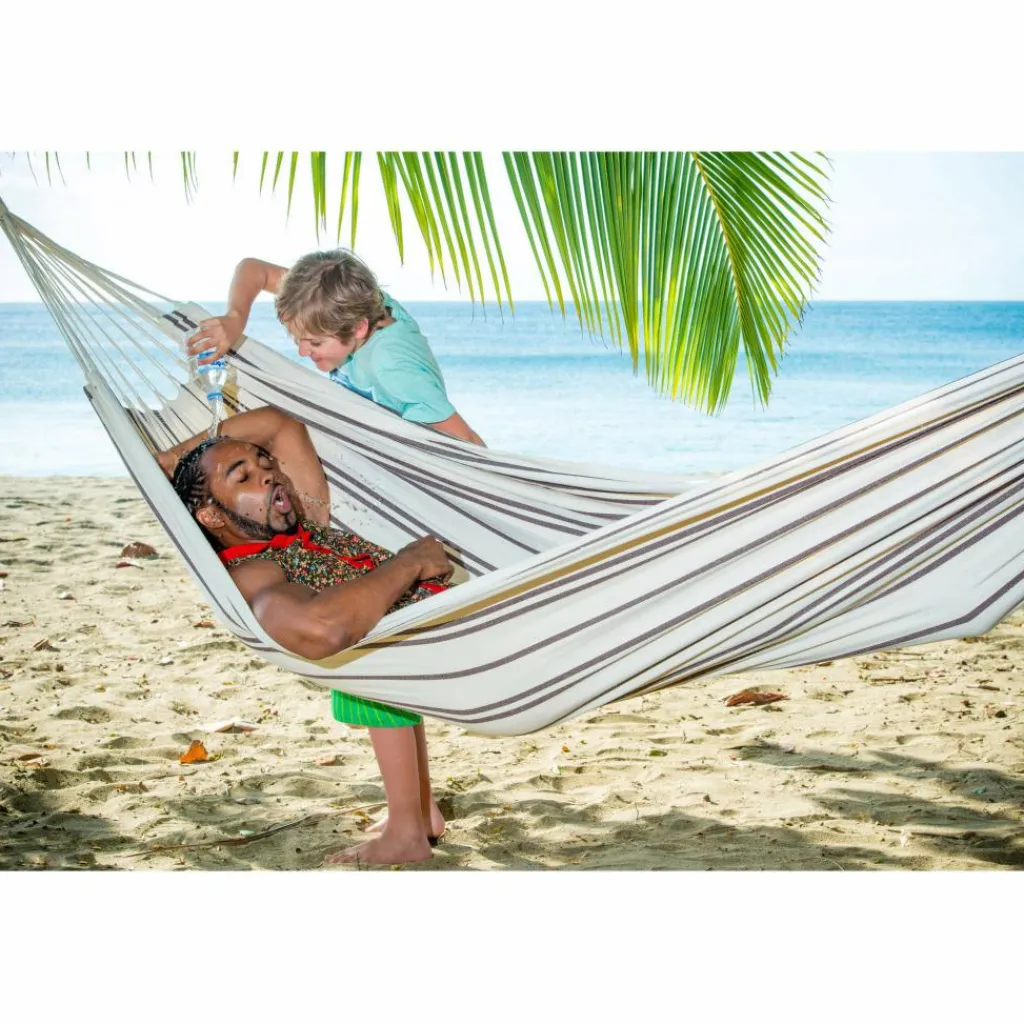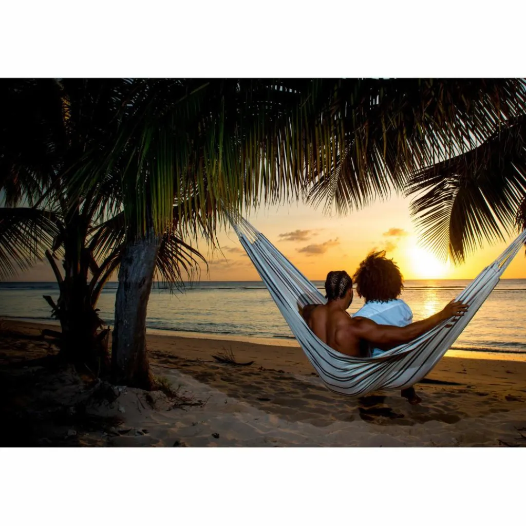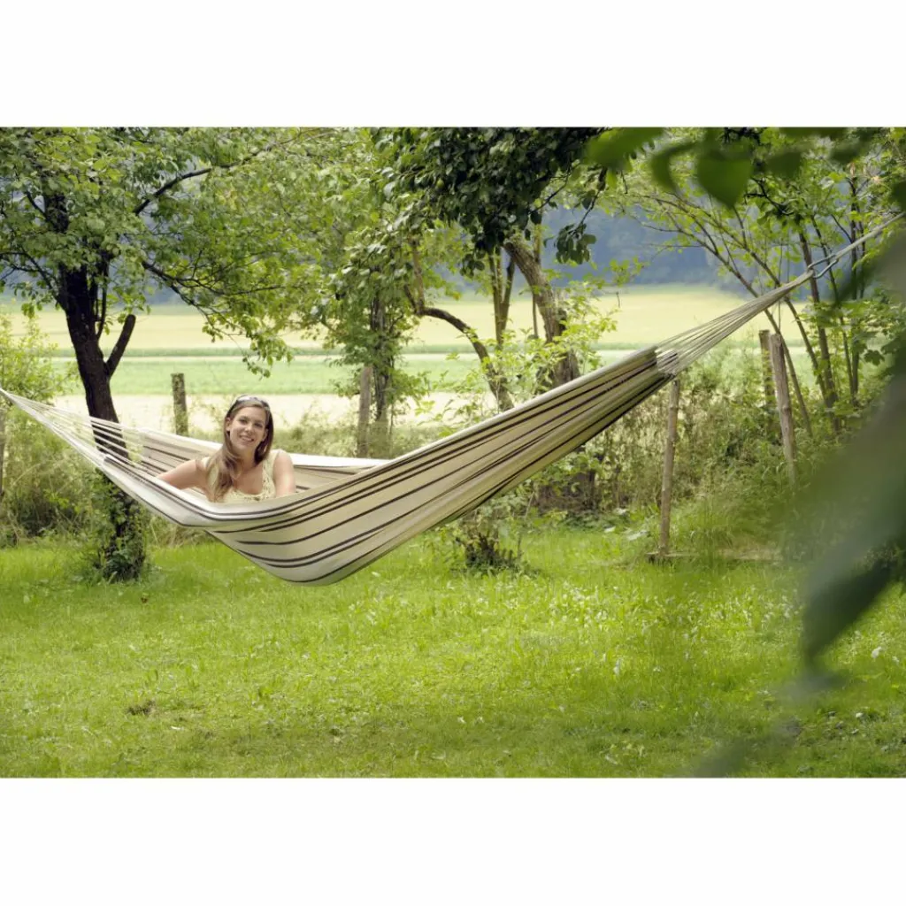 Die Barbados entsteht weitestgehend in Handarbeit. Der dichte, schwere Stoff ist angenehm im Griff und sehr langlebig. Durch die zahlreichen Aufhängeschnüre wird die Barbados sehr gut aufgefächert und du liegst traumhaft schwerelos.