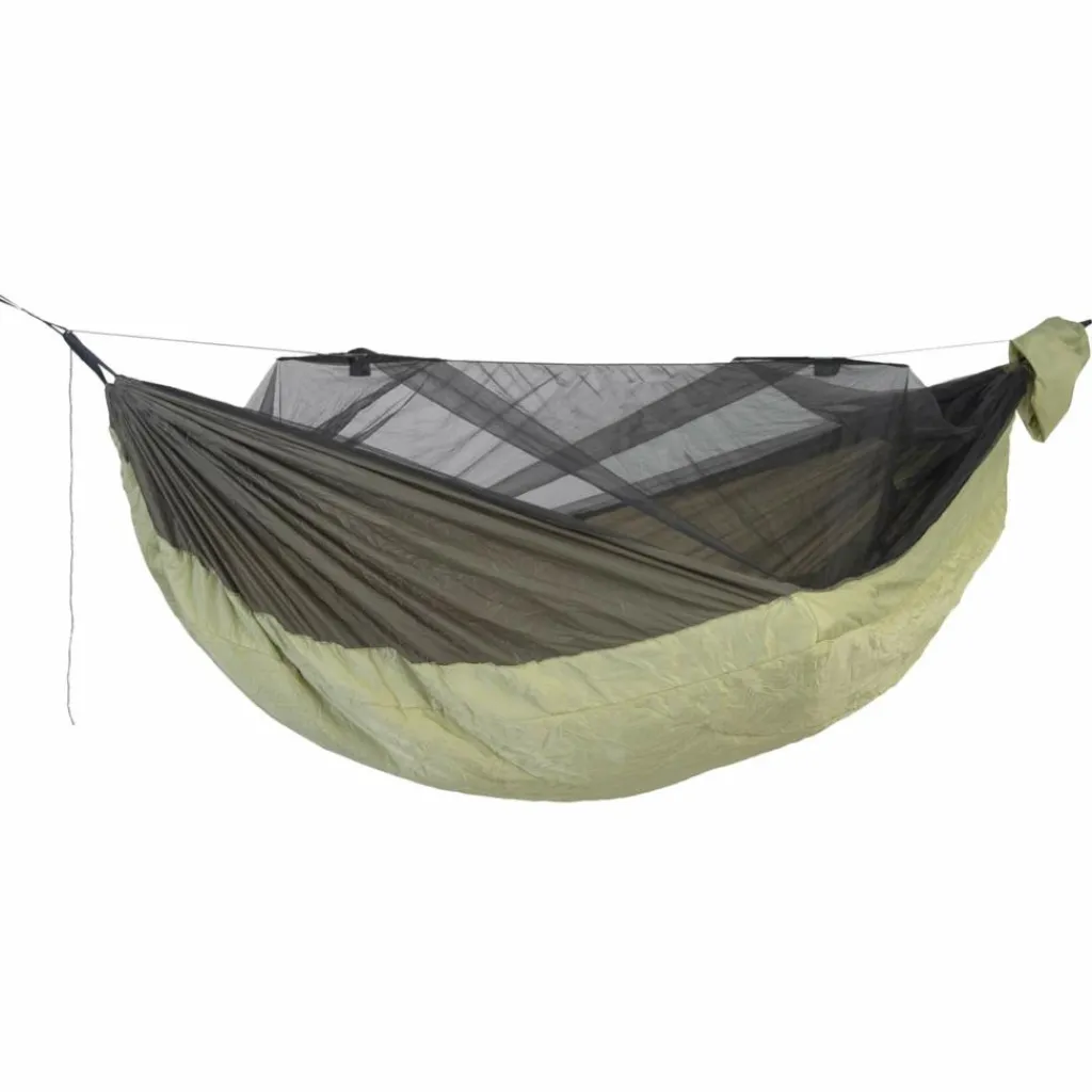 Schützt vor fliegenden Plagegeistern und kühlen Nächten: Diese Hängematte bringt alles mit. Klasse beim Moskitonetz sind die integrierte Ridgeline und die Spreizstäbe. Das macht den Aufbau einfach.
