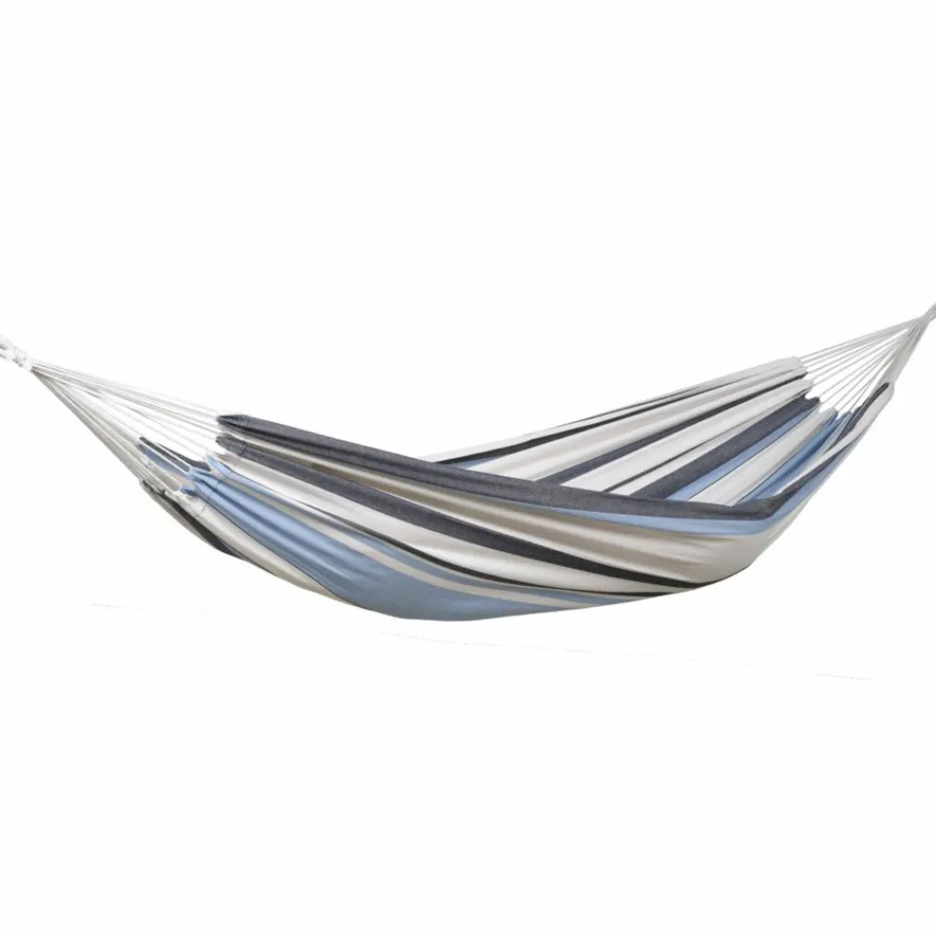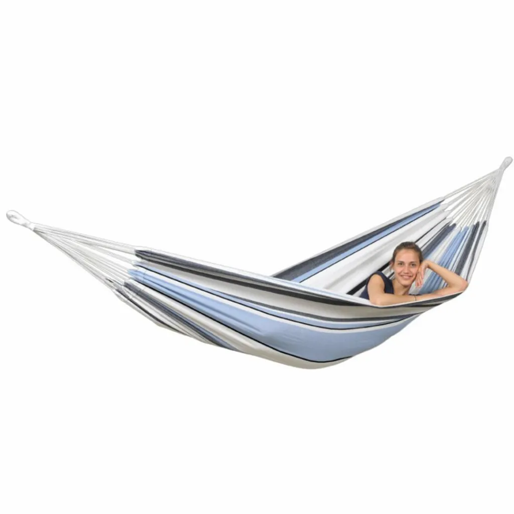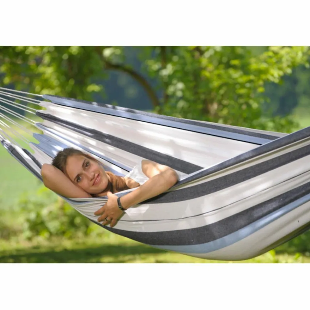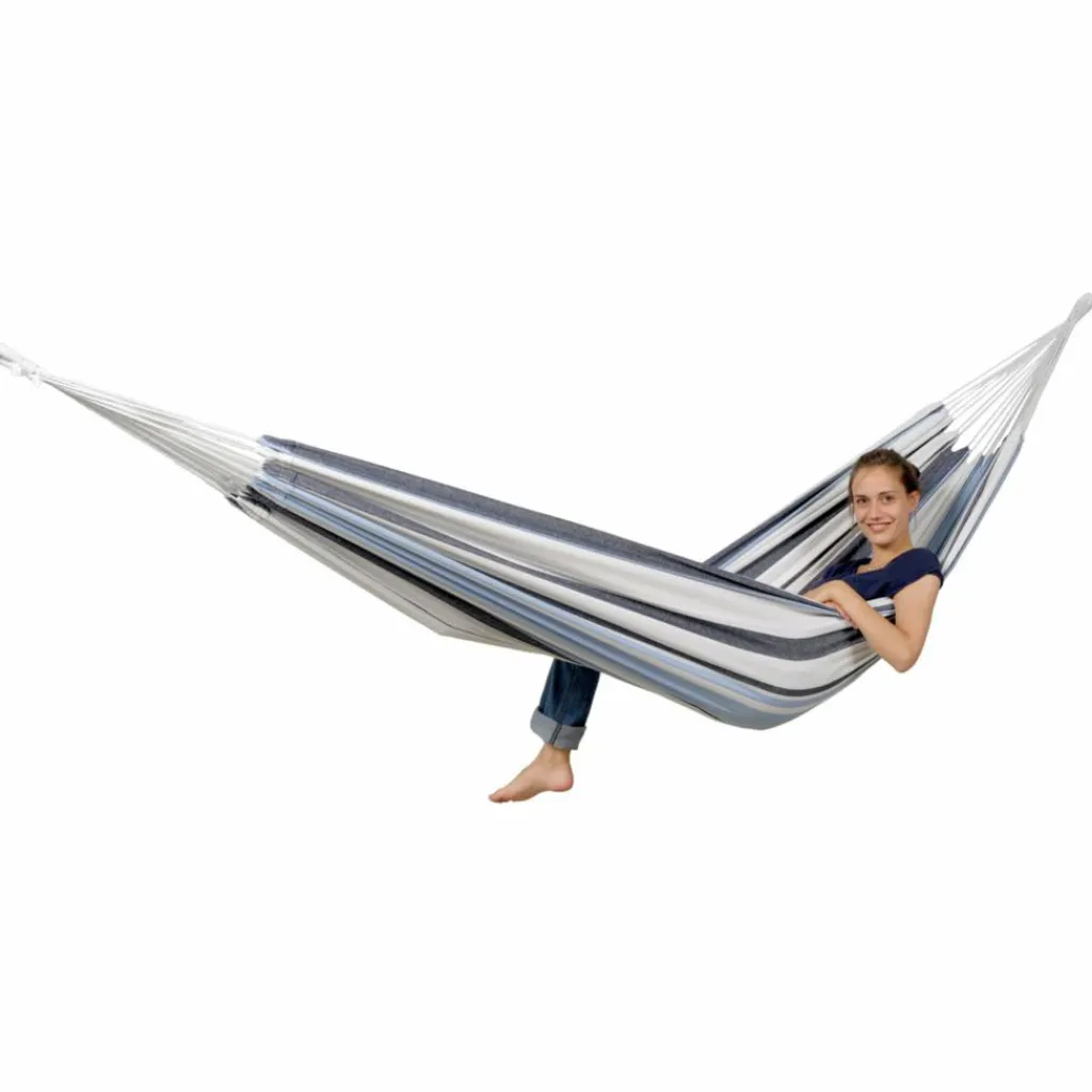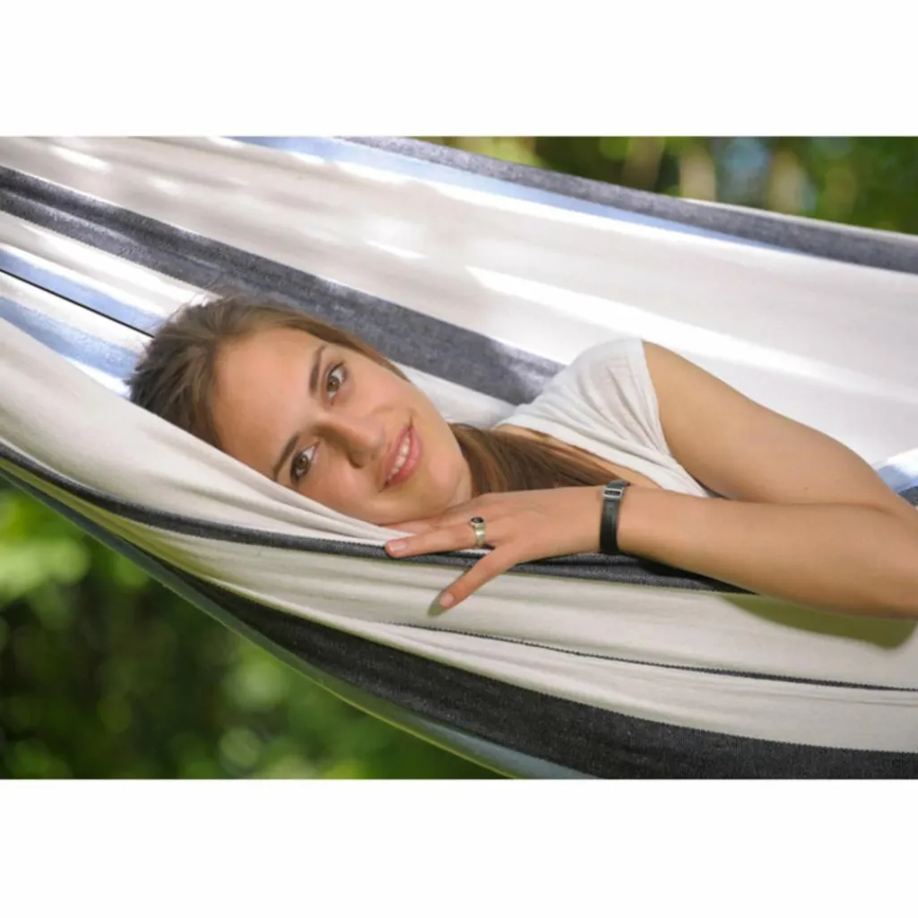 Das Material ist baumwollweich und dabei fast zur Hälfte aus Polyester. Das verleiht dem Elltex-Material (Elltex steht für Extra Long Lasting Textile) eine hohe Wetterbeständigkeit und Robustheit. Durch die Breite von 140 cm kannst du auch in dieser Hängematte den Amazonas-typischen, beinahe schwerelosen Liege-Komfort genießen.