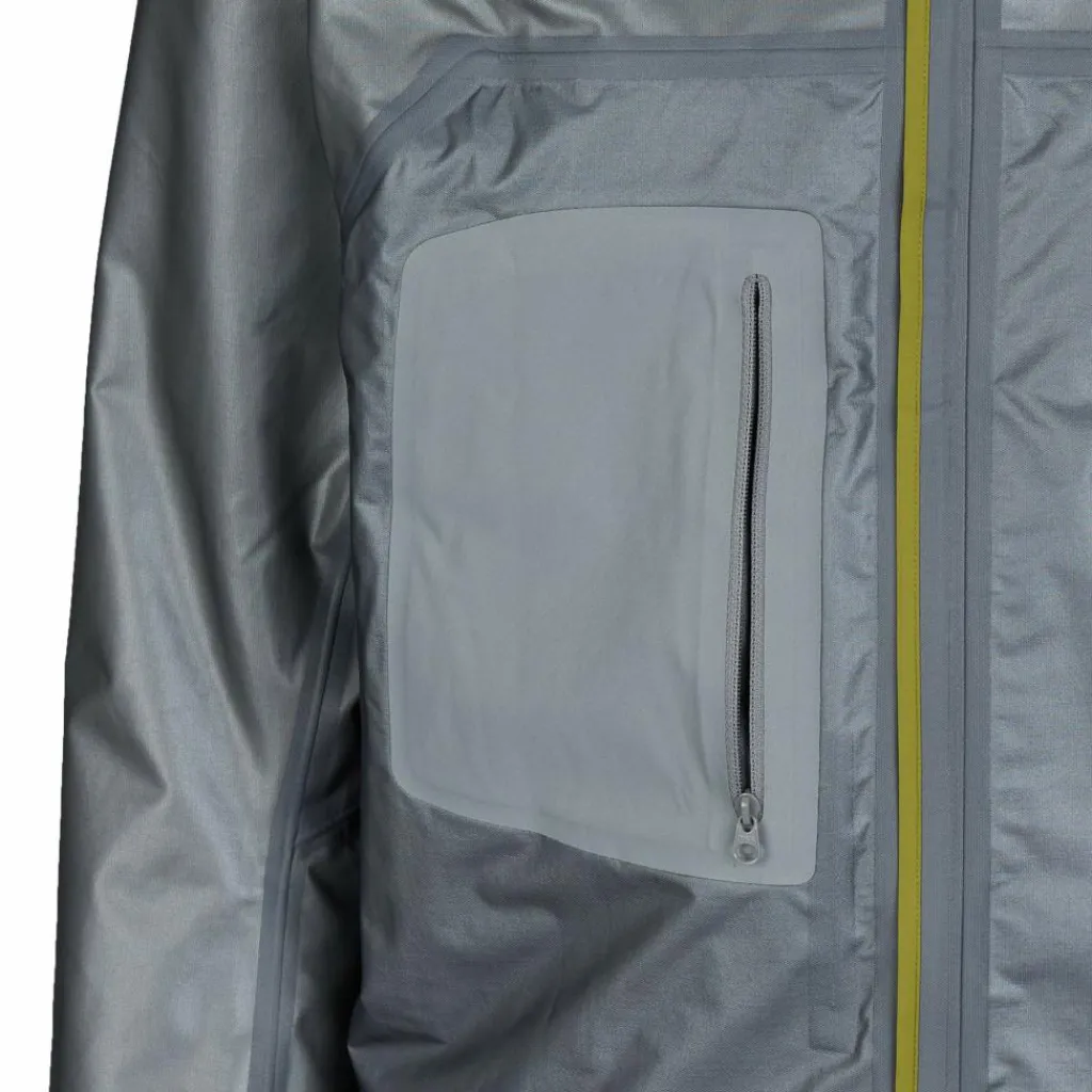 Das Material ist aber nicht nur durch ihr geringes Gewicht äußerst praktisch: Zusätzlich ist es dank ePE-Membran von Gore-Tex wasser- und winddicht und bietet selbst besonders hartnäckigen, stürmischen Regenschauern zuverlässig die Stirn. Für zusätzlichen Schutz sorgen der hohe Kragen und die einhändig verstellbare Kapuze mit stabilem Schirm und Kinnschutz. Zudem ist die Jacke stark atmungsaktiv, sie lässt also besonders viel Wasserdampf entweichen, wenn du bei deinen Aktivitäten ins Schwitzen gerätst. Zusätzlich sorgen die Belüftungsreißverschlüsse unter den Armen bei Bedarf für schnelle Abkühlung.