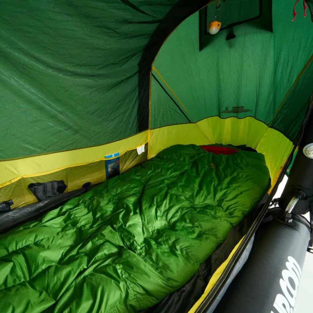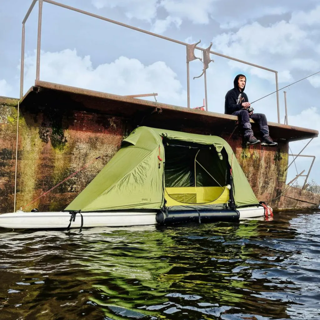 Das Cabin kannst du auch ohne Board aufstellen. Dafür werden die seitlichen Tubes entfernt und das Zelt ganz klassisch mit Heringen am Ufer oder auf einem Campingplatz aufgebaut.