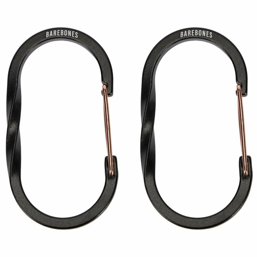 Hübscher Materialkarabiner, dessen eloxiertes Aluminiummaterial im Rückenbereich kunstvoll verdreht ist. Geeignet zum Aufhängen von Laternen, Wäscheleinen und Ausrüstung.