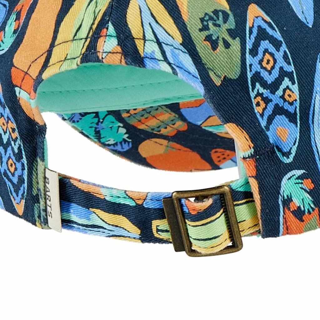 Hier ist ganz schön was los. Farbenfroh präsentiert sich die Cap aus 100 % Baumwolle. Sie hat zum Schutz von Kindergesichtern gleich noch eine ca. 6,5 cm langen Schirm im Gepäck. Für den Komfort kleiner Sonnenanbeter:innen verläuft innen ein weiches Band. Dieses nimmt außerdem entstehende Feuchtigkeit auf, wenn es besonders warm wird. Da jeder Kinderkopf anders ist, lässt sich mithilfe eines stufenlos verstellbaren Stoffriegels der passende Sitz finden.