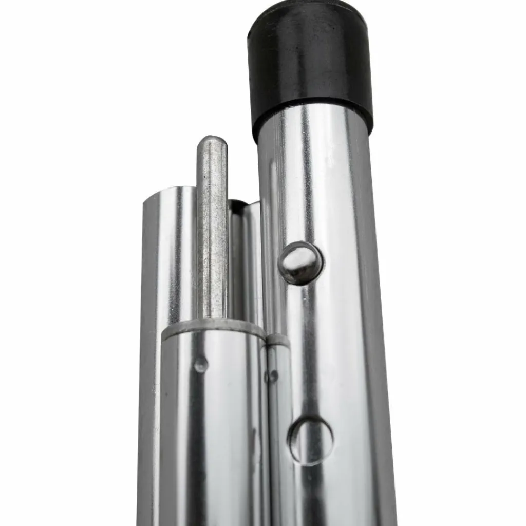 Das 1,1 mm dicke Aluminium ist im Durchmesser von 2,2 cm und 1,9 cm verarbeitet, was eine gute Stabilität gewährleistet. Du kannst sie zum Aufstellen von kleinen Tarps und Zelteingängen verwenden. Die Höhe ist durch den Federdruckknopf in 10 Stufen einstellbar.