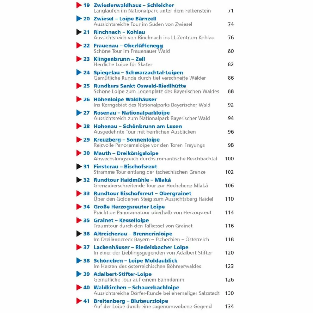 Es wird zudem auf Einkehrmöglichkeiten, mögliche Gipfelabstecher, Loipenverbindungen und -varianten sowie interessante Objekte an oder in der Nähe der jeweiligen Loipe aufmerksam gemacht. Für die Nachtaktiven sind auch einige Loipen mit Flutlichtbeleuchtung aufgelistet. So kann jeder nach seinen Wünschen die Routen zusammenstellen und somit individuell die Natur genießen, Kraft tanken und sich erholen. Ausstattung: Routenkärtchen, eine Übersichtskarte.