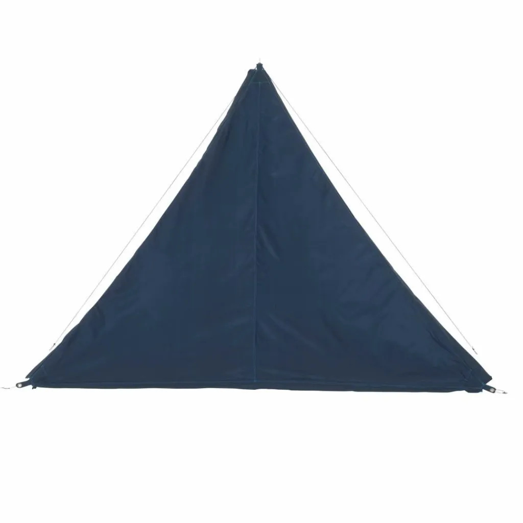 1 Sonnensegel, 1 Tragetasche mit Kordelzug, 3 Abspannleinen; je 350 cm mit Aluminium Dreilochspanner, 3 Aluminium Erdnägel 180 cm x 5 mm