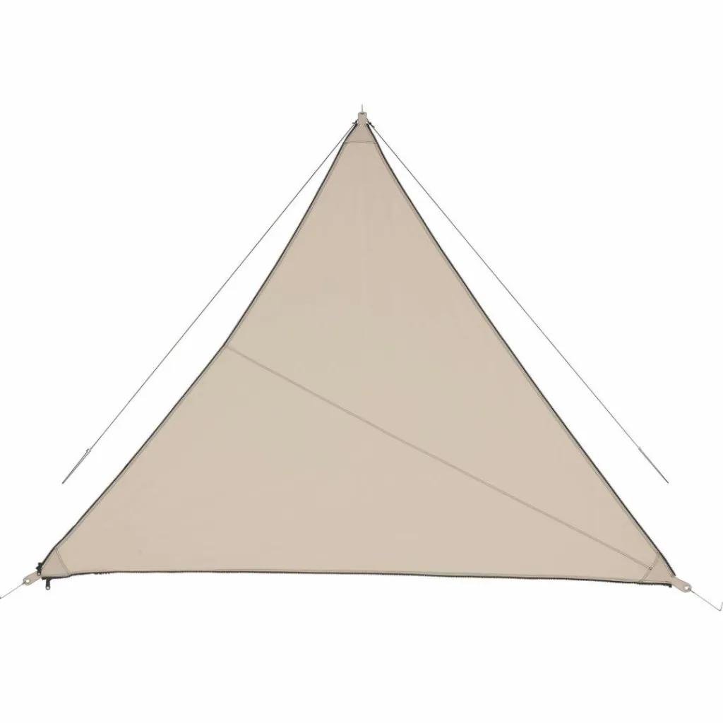 Jede Ecke des Tarps ist verstärkt und besitzt eine Metallöse, durch die du eine (separat erhältliche) Tarpstange stecken kannst. Mit den Abspannleinen wird das Tarp sicher an Bäumen oder am Boden fixiert. Damit stellt das Bent Tarp einen schönen Begleiter dar, der dich zu Festivals, zum Campen oder an den Strand begleitet.