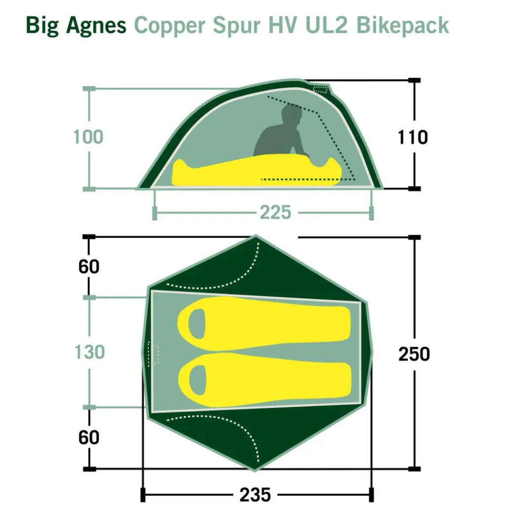 Das Copper Spur HV UL2 Bikepack bietet zwei Person ausreichend Platz. Die fast vertikalen Wände ermöglichen eine gute Raumnutzung. So kannst du an verregneten Tagen bequem im Zelt sitzen und lesen oder die Trail-Karte studieren. Die großen Mesh-Flächen des Innenzeltes und der Hochlüfter sorgen für ein gutes Klima bei sommerlichen Temperaturen.