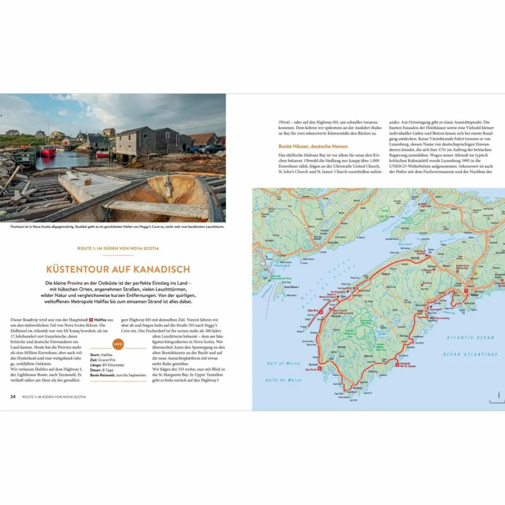 Ob Hochgebirge, wilde Küste, Prärie oder endlose Wälder: Das zweitgrößte Land der Erde ist landschaftlich enorm vielfältig. Ein Roadtrip ist bei den Dimensionen ein Muss, wenn man Kanada auf eigene Faust entdecken will. Dieser Reiseführer stellt verschiedene Routen samt Sehenswürdigkeiten und Unterkünften vor, die je nach Zeit und Abenteuerlust ein paar Tage oder Wochen dauern können – vom Städtetrip im Osten bis zum langen Highway in den Norden.