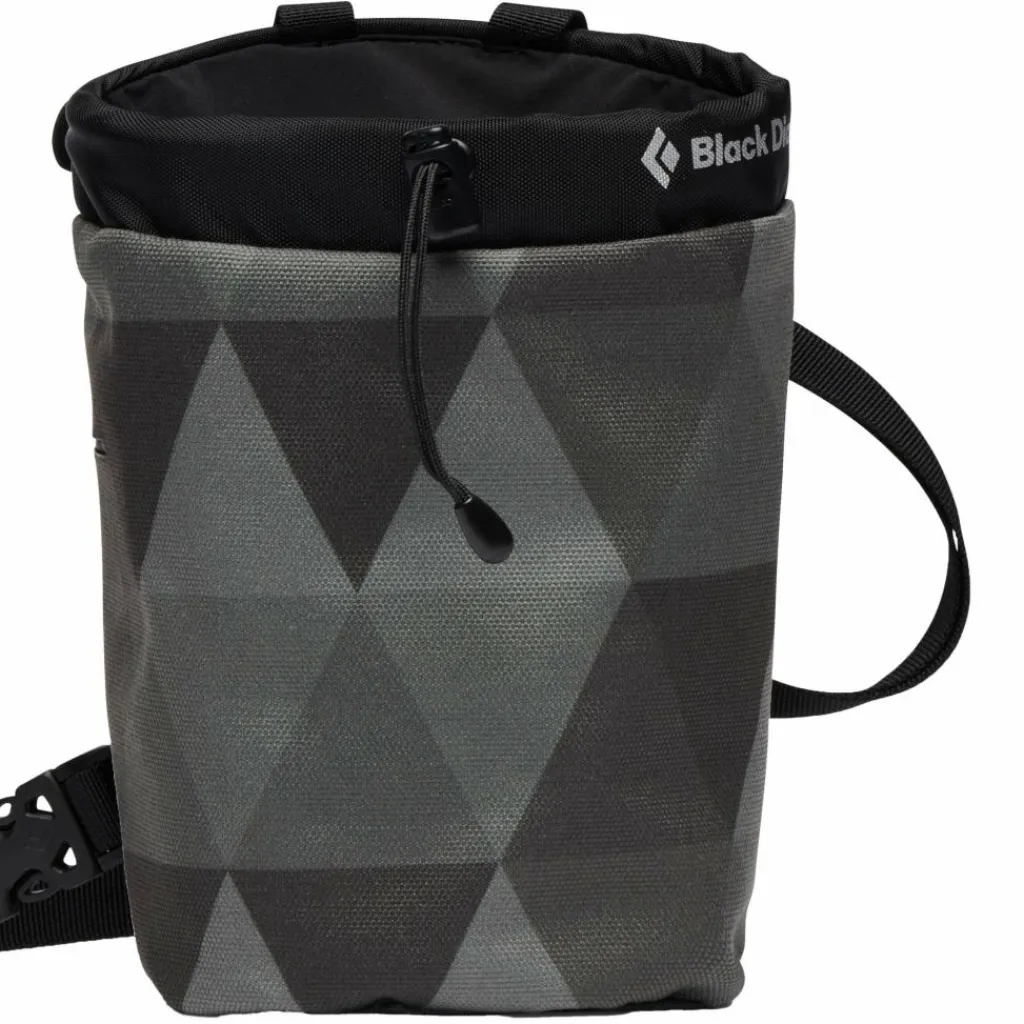Geräumiger Chalkbag, ausgestattet mit allem, was du für die Kletterhalle benötigst: dazu zählt auch ein Fach für die Zutrittskarte und eine Halterung für die Boulder-Bürste.