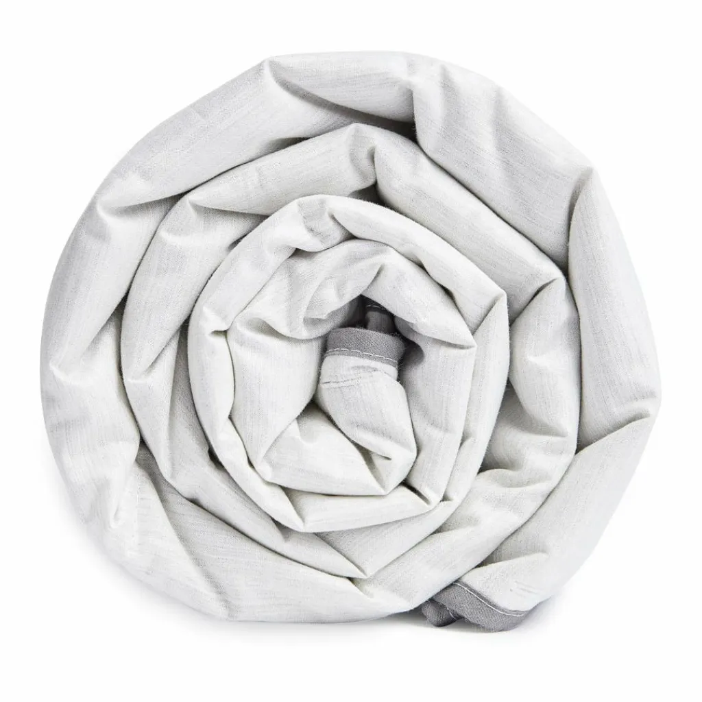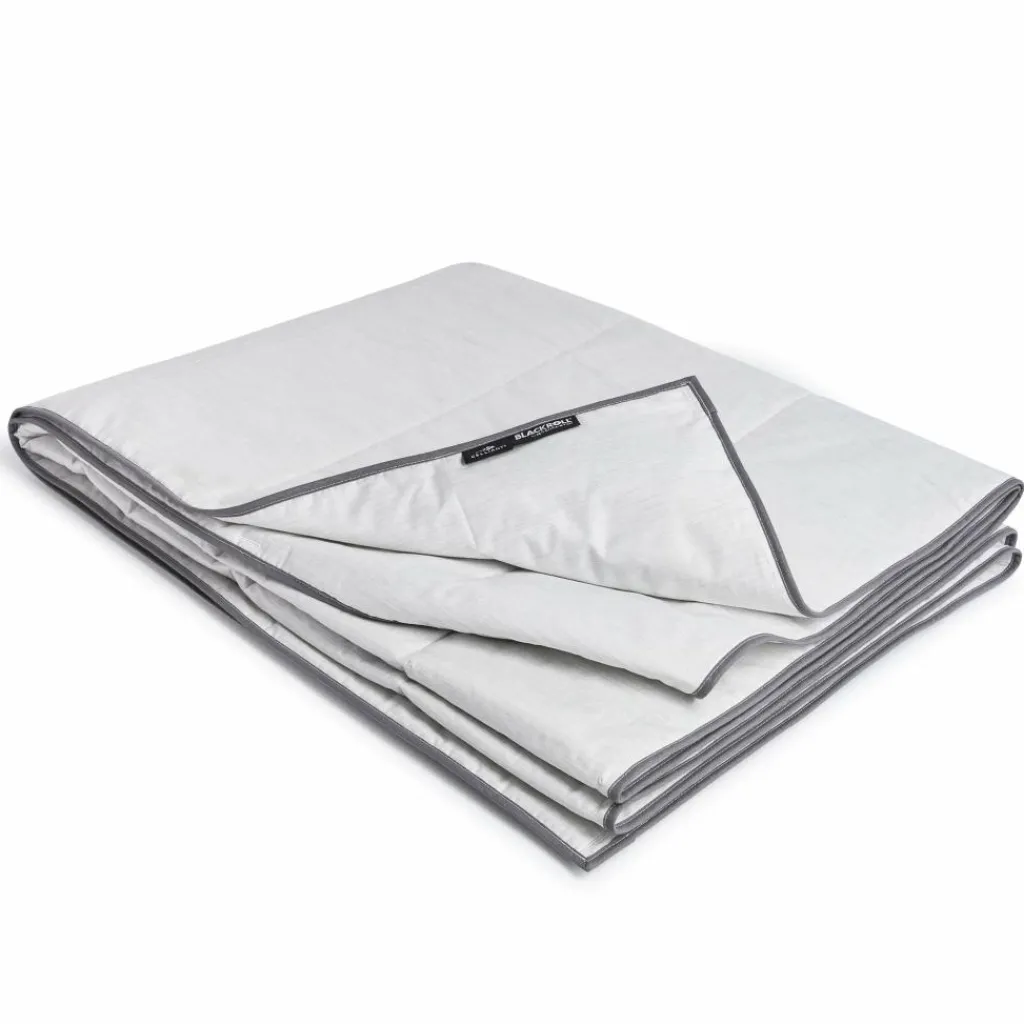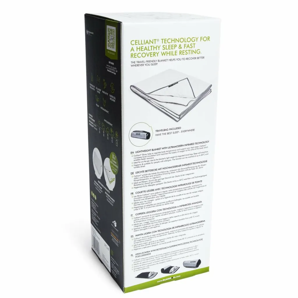 Die Decke besitzt einen weichen Baumwollbezug und ist mit einer leichten Isolation aus Celliant ausgestattet. Dieses technische Material hat die Eigenschaft, die Durchblutung zu fördern und die Sauerstoffversorgung der Zellen zu verbessern. Ermöglicht wird dies durch die Eigenschaft der Faser, abgegebene Körperwärme zu reflektieren und sie in Infrarotenergie umzuwandeln. Die Füllung besteht aus 30 % recycelten Fasern.