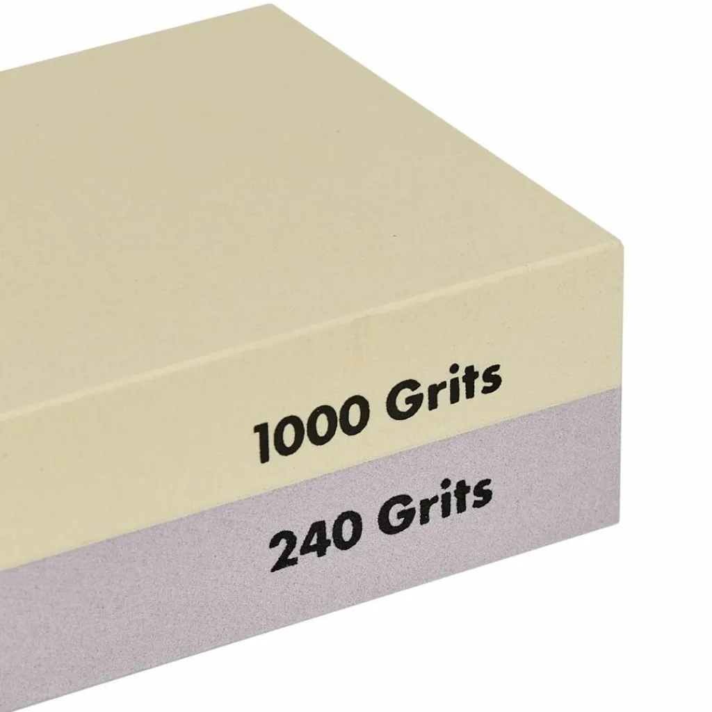 Dieser wasserbasierte Abziehstein besitzt zwei unterschiedliche Körnungen. Eine 240er Körnung für den Vorschliff und eine feine 1000er Körnung für den Feinschliff.