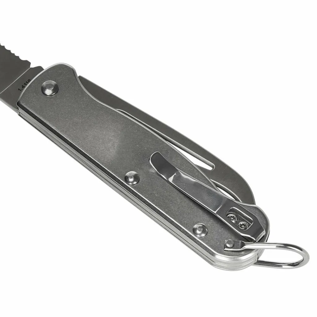 Das Takelmesser ist in Zusammenarbeit mit der Deutschen Gesellschaft zur Rettung Schiffbrüchiger entstanden. Es besteht aus rostträgem Edelstahl und ist mit einer 8,45 cm langen Klinge mit Glatt- und Wellenschliff ausgestattet, das mühelos Taue und Schnüre durchtrennt. Zusätzlich zur Hauptklinge befindet sich ein Marlspieker an Bord. Mit ihm kannst du festsitzende Knoten aufstechen. Zusätzlich enthält er einen Schäkel- und Flaschenöffner.