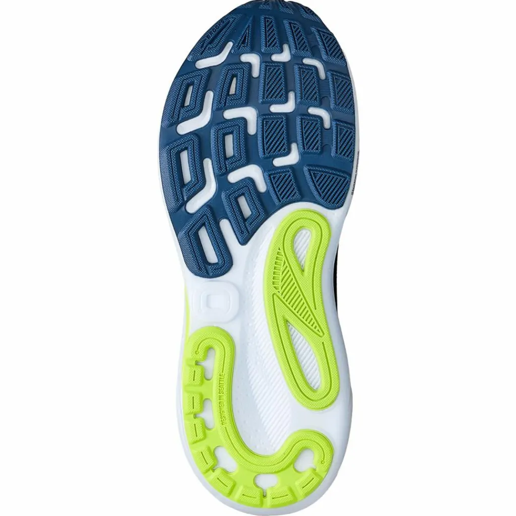Als Obermaterial kommt besonders leichtes und äußerst atmungsaktives Mesh-Gewebe zum Einsatz. Dank der feuchtigkeitsleitenden Eigenschaften ist es besonders gut für hohe Temperaturen und intensive Wettkampf- und Trainingseinheiten geeignet. Es wurde im Zehenbereich mit reflektierenden Designelementen ausgestattet und ist im Fersenbereich zusätzlich verstärkt. Dadurch ist der Schuh nicht nur robuster, auch sitzt dein Fuß fester und stabiler um Schuh.