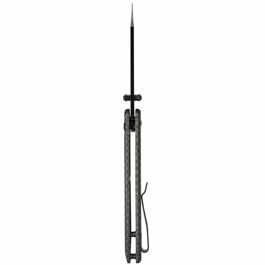 Das Sovereign-Taschenmesser besticht durch sein schlichtes Design, einen seltenen Verriegelungsmechanismus, eine dunkle Klinge aus 7CR17-Stahl und passende Griffschalen aus Edelstahl in Carbon-Optik.