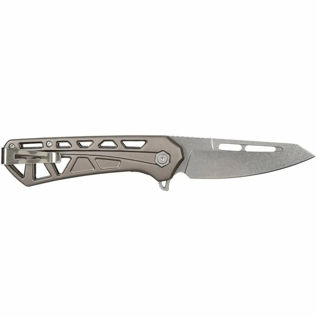 Das taktisch inspirierte Trace OPS überzeugt mit seinem leichten, skelettierten Aluminiumgriff und der ebenfalls skelettierten, silberfarbenen Klinge in Tanto-Form.