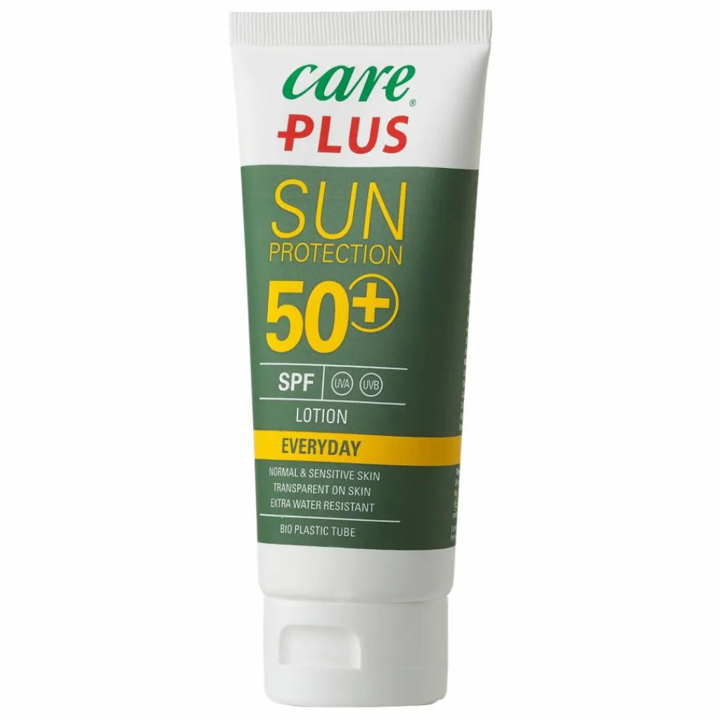 Die Sonnencreme von Care Plus ist wasserfest und schützt mit SPF 50+ bei starker UV-Strahlung. Ideal für Sonnenanbeter am Strand, auf dem Wasser und in den Bergen.