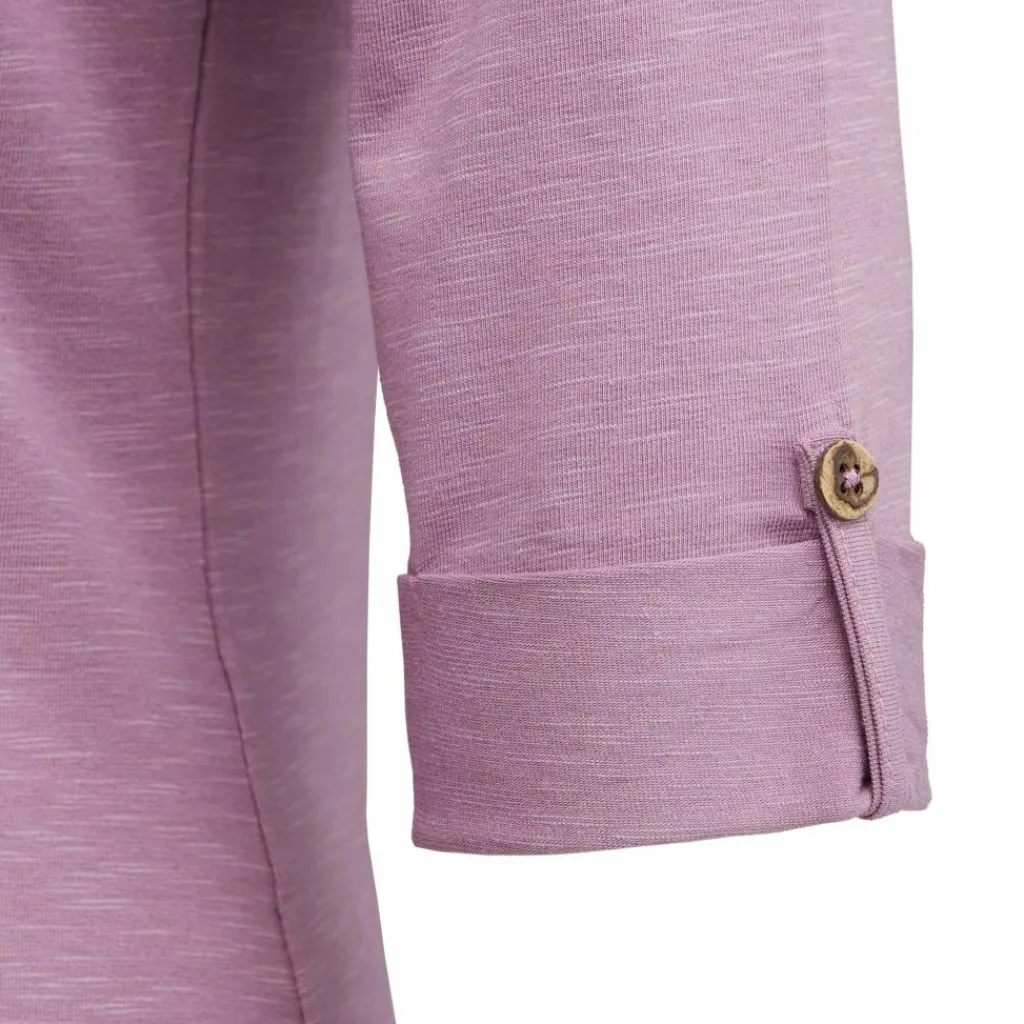 Typisch Chillaz: Das Shirt eignet sich wunderbar zum Klettern und Bouldern, sieht dabei jedoch absolut alltagstauglich aus. Die gekrempelten Ärmel sind mit kleinen Zierknöpfchen versehen. Der Bund ist stark abgerundet und fällt lässig. Natürlich darf auch die ikonische Zick-Zack-Naht an der Schulter nicht fehlen.