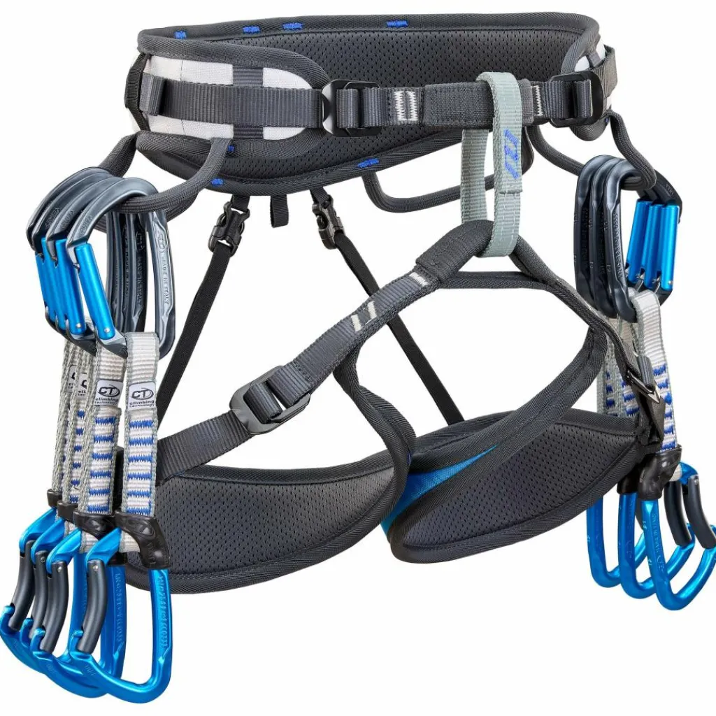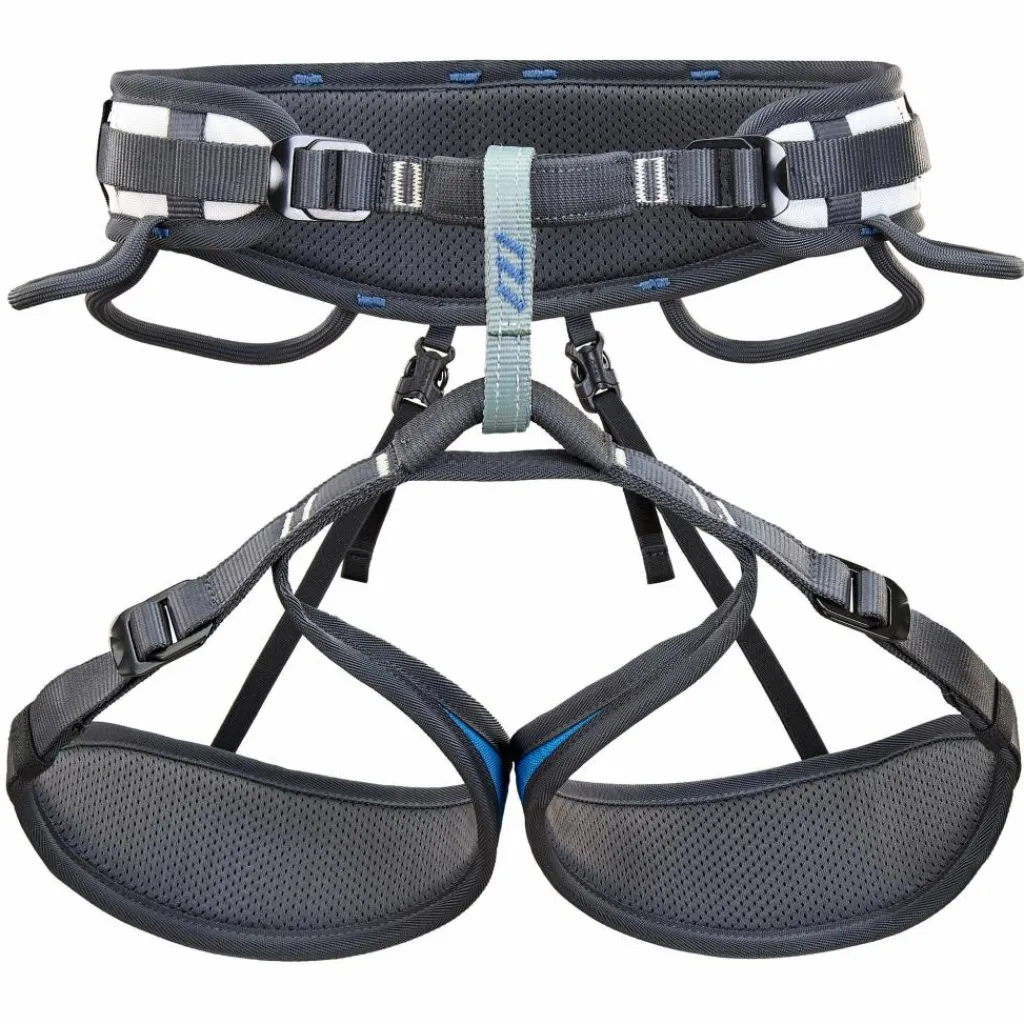 Dank der vier soliden Schnallen kannst du den Hüftgurt und die Beinschlaufen millimetergenau anpassen und den Einbindepunkt dabei stets schön mittig ausrichten. Das ist auch praktisch, wenn du mal eine Bekleidungsschicht mehr darunter tragen möchtest.
