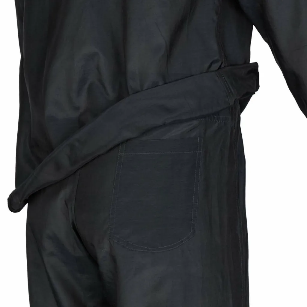Die Seide wirkt temperaturausgleichend während die Baumwolle für Strapazierfähigkeit und Feuchtigkeitsspeicherung zuständig ist. Der Schlafanzug besteht aus einem langärmligen Oberteil und einer langen Hose. Das Packmaß beträgt 15 cm x 13 cm x 5 cm.