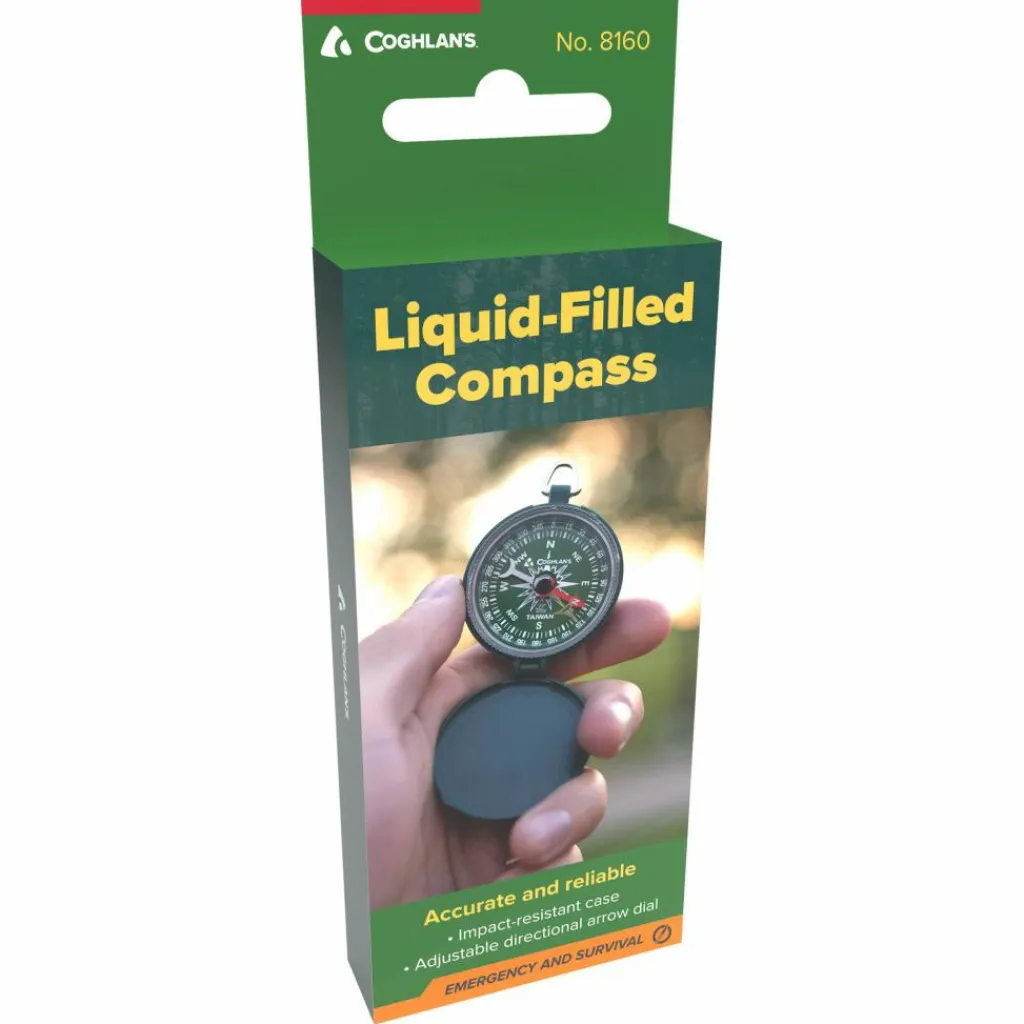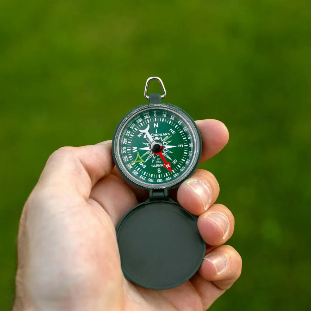Günstiger Einsteigerkompass mit stabilem Gehäuse, juwelengelagerte Nadel mit selbstleuchtender Kompassnadel und verstellbarer Kapsel zur Richtungseinstellung sowie Memorypfeil. Flüssigkeitsgefüllt.