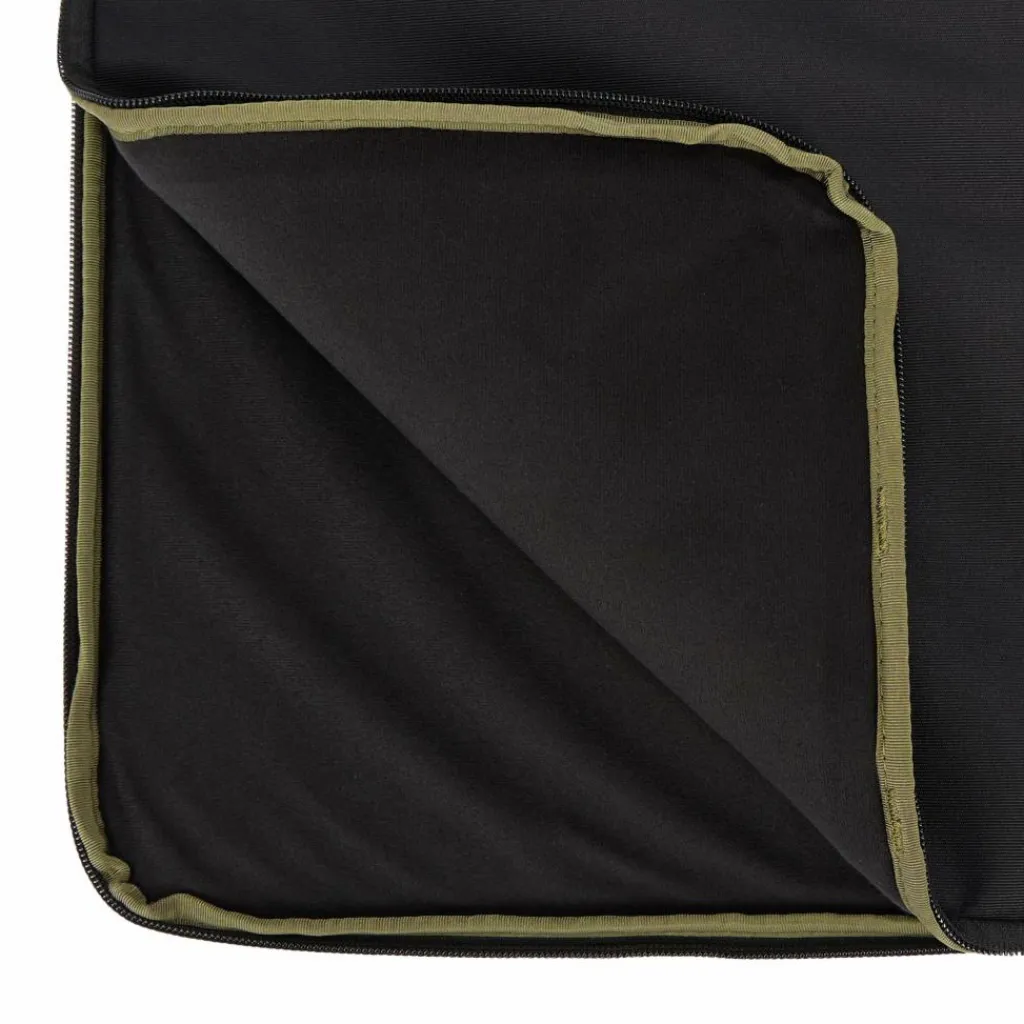 Eine Schaumstoffpolsterung und das gefütterte Innere sorgen dafür, dass dein Arbeitsgerät beim Transport gut geschützt ist. Soll es zum Einsatz kommen, kannst du die 16-Zoll-Laptoptasche dank des Handgriffs einfach aus dem Rucksack oder der Tasche herausnehmen. Die Öffnung ist L-förmig, sodass du im Hoch- und Querformat auf deinen Laptop zugreifen kannst. In das Klettverschlussfach auf der Front passen Ladekabel und Kopfhörer.