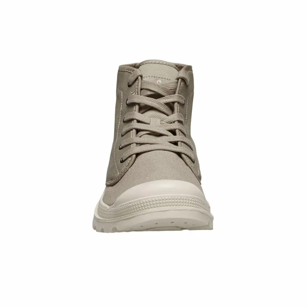 Das Obermaterial des Wüstenstiefels besteht aus robustem Canvas-Gestrick, also recyceltem Polyester und Baumwolle. Hier kommt außerdem die mückenabweisende NosiLife-Ausrüstung zum Einsatz. Dabei handelt es sich um einen Geruchsstoff auf Basis des Zitroneneukalyptus-Baums. Als Innenfutter kommt ein weiches Baumwollfutter zum Einsatz. Die verwendeten Schnürsenkel des Mono Mid 2 bestehen, wie auch Teile des Obermaterials ebenfalls aus recyceltem Material.