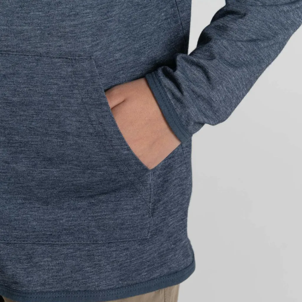 Das zum Teil recycelte Polyester der Kapuzenjacke kann mit einem guten Feuchtigkeitsmanagement aufwarten. Wird es bei feuchtwarmer Luft also schweißtreibend, wird dieser rasch nach außen geleitet. Deine Kids können sich über ein angenehmes Tragegefühl freuen, welches die Baumwolle noch verstärkt. Der kleine Elasthan-Anteil sorgt für mehr Dehnbarkeit und Bewegungsfreiheit.
