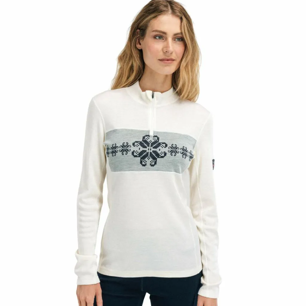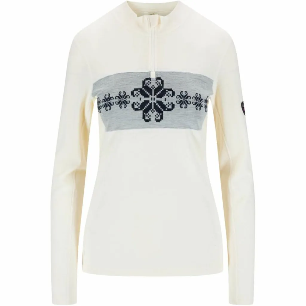 Sein hochwertiges, temperaturausgleichendes Merinowoll-Material und sein hübsches Norwegermuster machen den Falkeberg Feminine Baselayer Half Zip zum funktionalen Wohlfühl-Shirt für aktive Wintertage.