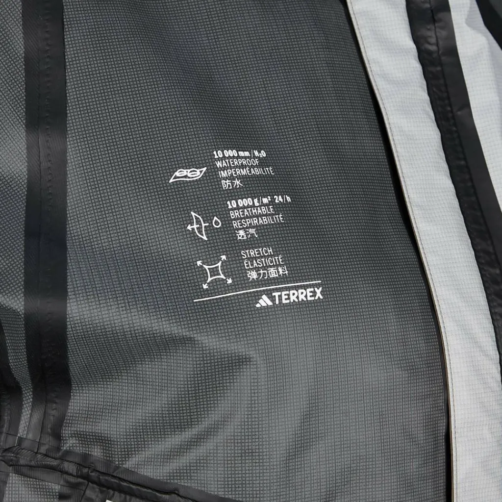 Die Terrex Xperior 2,5 Layer Hybrid Primeknit Climaproof Jacket ist zuverlässig wasserdicht und sorgt dank elastischer Primeknit-Einsätze für volle Bewegungsfreiheit auf dem Trail.