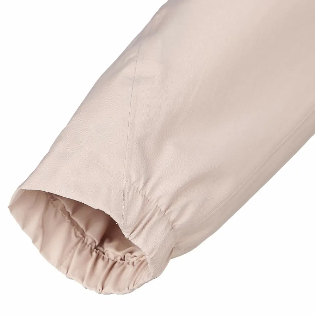 Neben den beiden Einschubtaschen verfügt die Jacke außerdem über eine Brusttasche mit Reißverschluss, die etwas tiefer als gewöhnlich angebracht ist. So drücken die Gegenstände in der Tasche nicht unangenehm auf der Brust. Die versetzten Schulternähte bieten mehr Komfort, wenn du mit einem Rucksack unterwegs bist. Die asymmetrisch geschnittenen, teilelastischen Ärmelbündchen decken auch die Handrücken gut ab und der Schnürzug im Saum verhindert, dass kalter Wind ungehindert von unten in die Jacke gelangen kann. So ist die Regenjacke ein zuverlässiger Begleiter für deine Tageswanderungen, für Städtereisen oder einfach für den verregneten Alltag.
