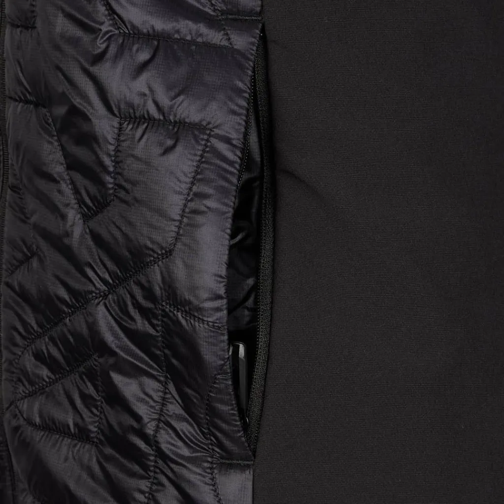 Die Rückseite der Weste ist aus einem elastischen Softshellgewebe gefertigt, das für volle Bewegungsfreiheit sorgt. Das Material leitet überschüssige Wärme und Feuchtigkeit schnell nach außen hin ab. Im Zusammenspiel mit der wattierten Frontseite sorgt es so für ein angenehmes Körperklima, wenn du dich bei kühlem Wetter richtig auspowerst.