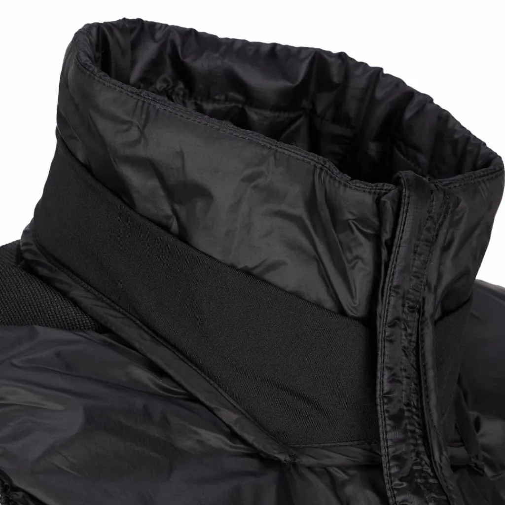 An den Armausschnitten und am Saum sorgen breite Elastik-Einfassungen für einen guten Sitz, ohne einzuschnüren. Dank des wattierten Kragens bleibt auch dein Hals gut vor Kälte geschützt. Wenn du die Weste unterwegs gerade nicht brauchst, kannst du sie einfach in der eigenen Tasche verstauen und platzsparend im Rucksack mitnehmen.