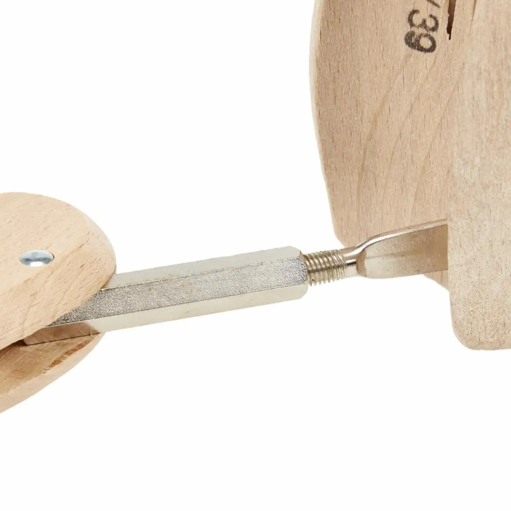 Ein solider Schuhspanner aus Holz, mit metallischem Schraubmechanismus. Am Besten direkt nach dem Tragen in den Schuh spannen. So arbeitet das Holz mit der im Schuh verbliebenen Körperwärme zusammen.