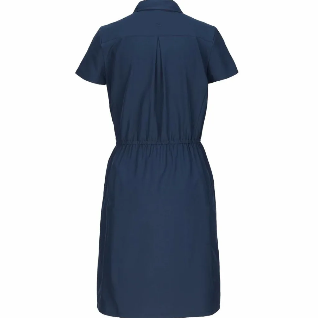 Das pflegeleichte Kleid bekommt durch den umgeschlagenen Kragen und die halblange Druckknopfleiste einen eleganten Look. Die teilelastische Taille lässt eine feminine Silhouette entstehen und wird durch eine Bewegungsfalte im Rücken harmonisch ergänzt. Für die schnelle Wäsche unterwegs stehen dir praktische Drying Loops zur Verfügung.