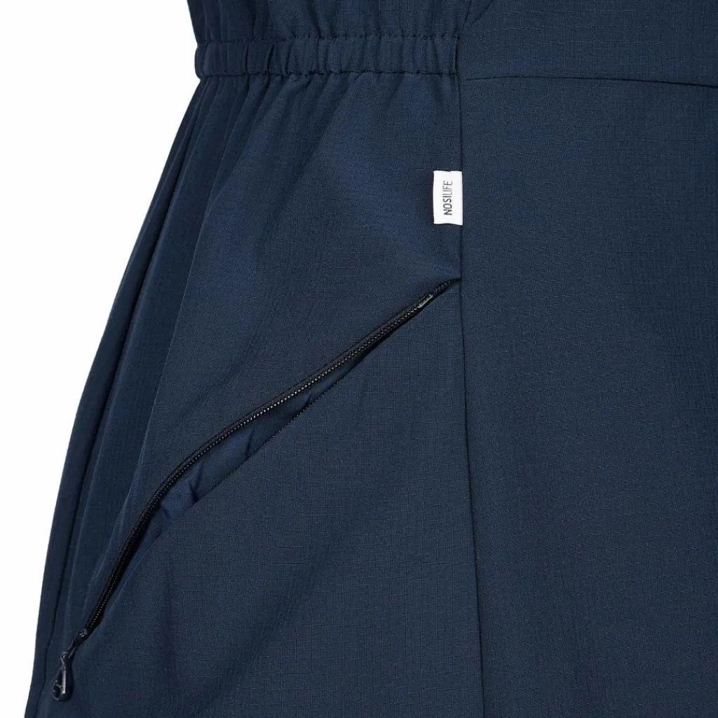 Mit seiner Mischung aus recyceltem Polyamid und Elasthan macht das Sommerkleid einiges mit. Das sehr leichte, aber dennoch reißfeste Material hält sowohl einem Marsch durchs Unterholz als auch ausladenden Bewegungen beim Paddeln problemlos stand. Bei warmen Temperaturen unterstützten dich die rasche Feuchtigkeitsleitung und die schnelltrocknende Eigenschaft des Gewebes. Dieses wird durch die feine Waffelstruktur des Kleides zusätzlich begünstigt.