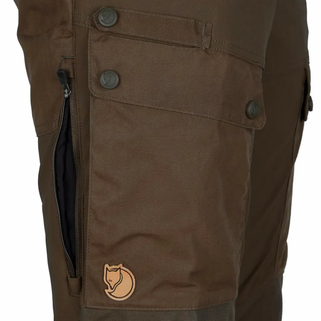Die Forest Hybrid Trousers kommt in einem durchdachten Material-Mapping daher: Auf der Rückseite, Oberschenkeln und Taschen kommt stretchiges G-1000 Silent Eco zum Einsatz, während die Hose von den Knien abwärts mit extrem robustem G-1000 HeavyDuty Eco verstärkt ist. Wanderst du also querfeldein durch Heidelbeersträucher, wird diese Partie gesondert vor Abrieb geschützt. Gleichzeitig hast du beste Bewegungsfreiheit, Luftigkeit und Atmungsaktivität, wo du sie am meisten brauchst.