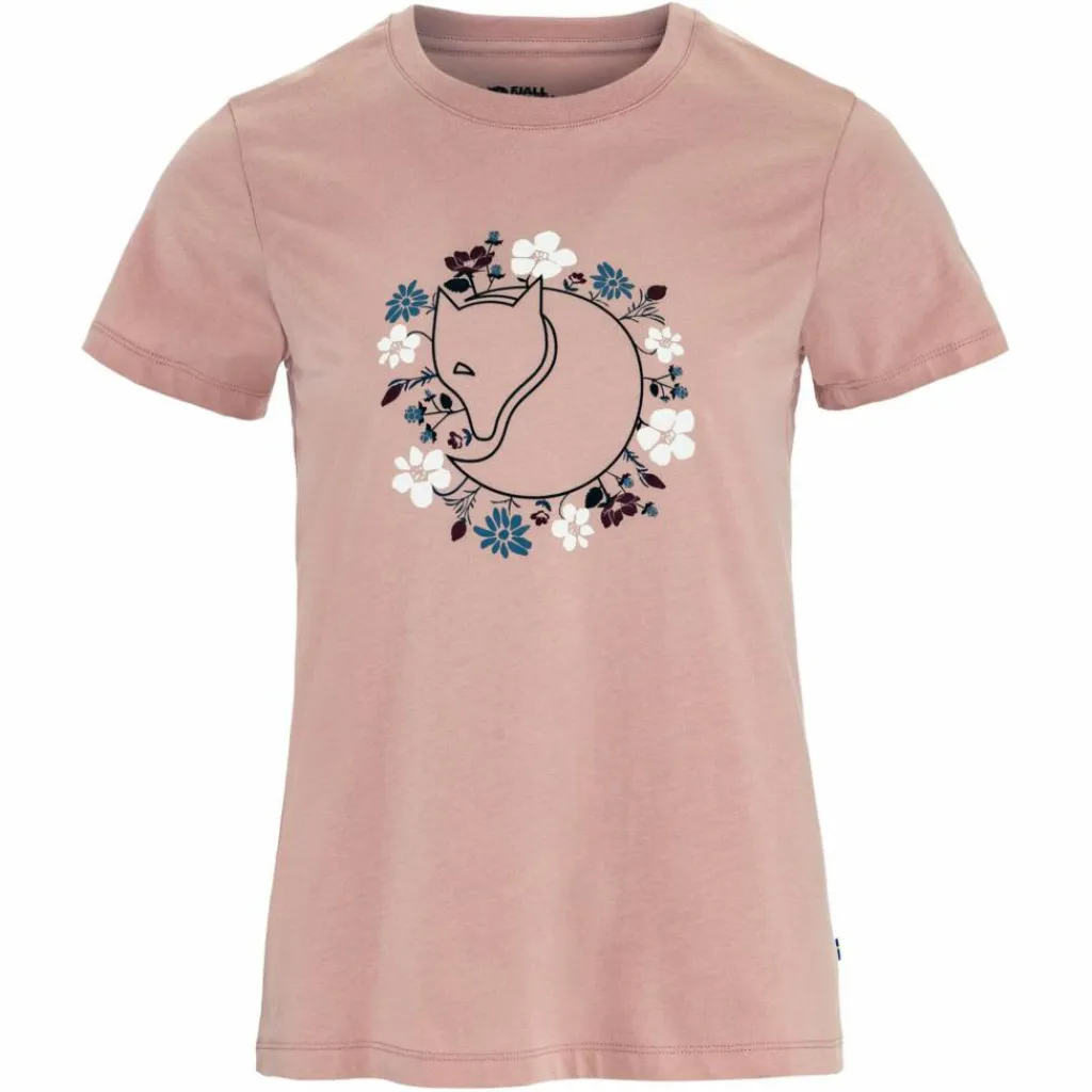 Der Fjällräven Polarfuchs, umkränzt von schwedischer Flora: Das Fjällblomster Fox T-Shirt W hat einen charmanten Bergblumen-Print und schmeichelt mit weicher Bio-Baumwolle.