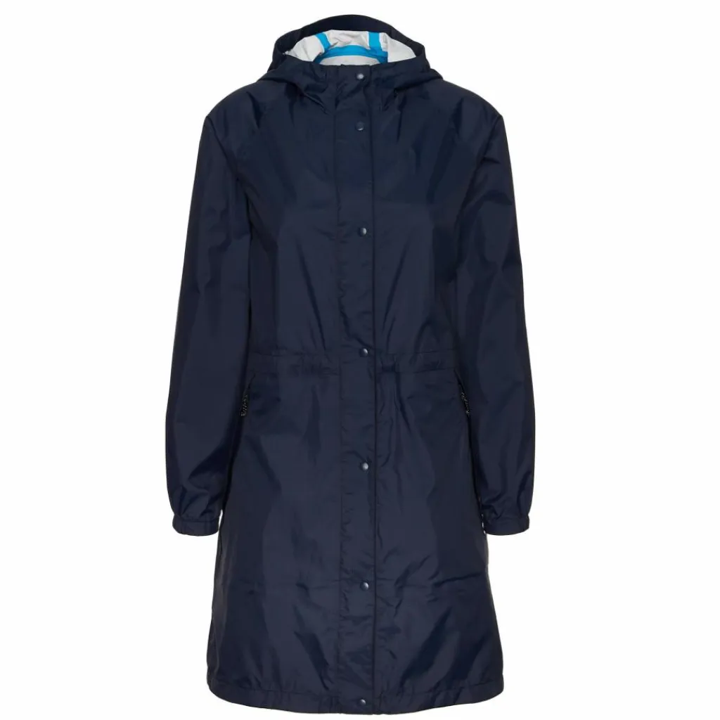 Der lange Schnitt bietet Regenschutz bis zu den Oberschenkeln. Durch den Schnürzug auf Taillenhöhe kannst du den Regenmantel ganz bequem auf deine individuelle Größe anpassen. Außerdem sorgt er für eine schöne, feminine Passform.