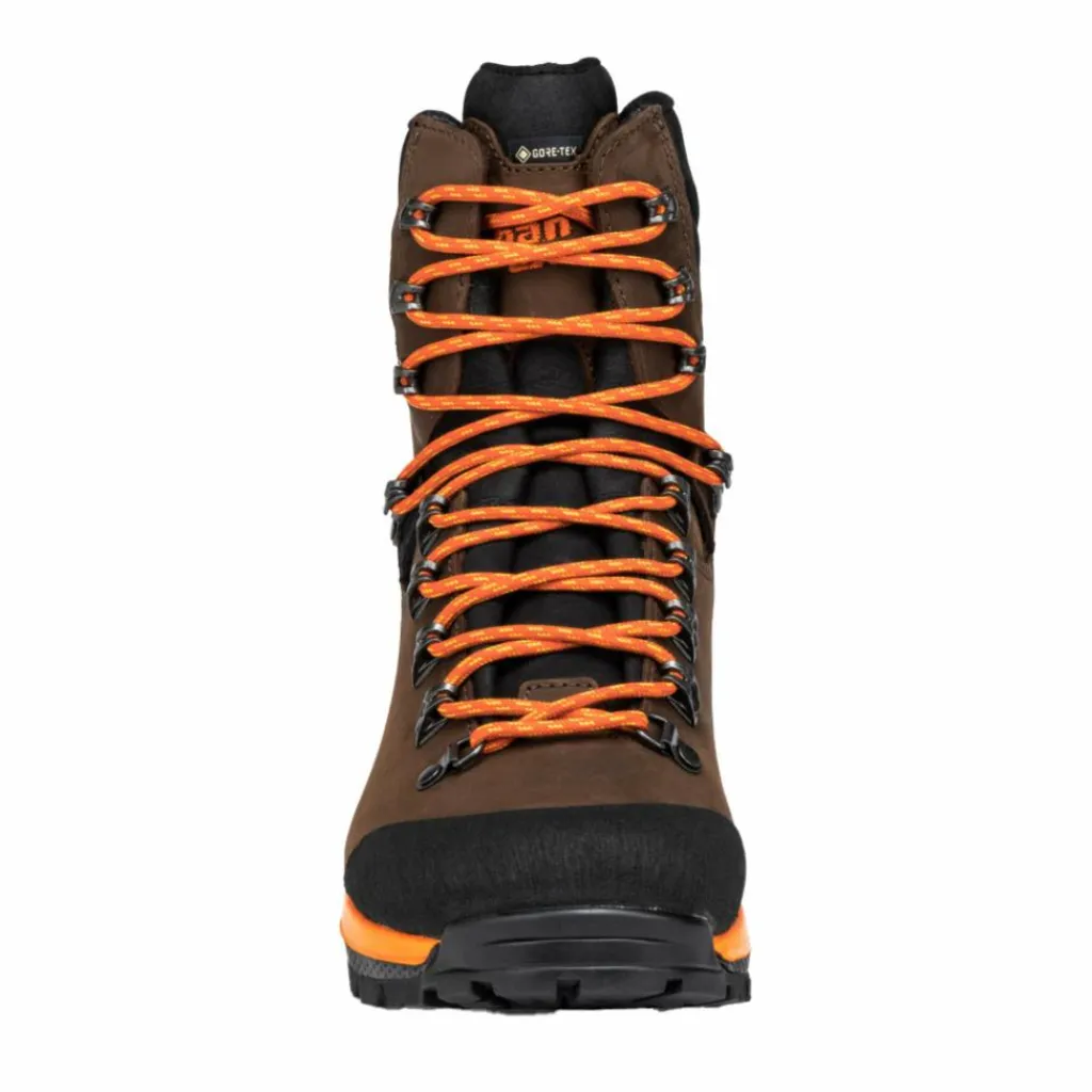 Dank StraightFit Extra-Leisten bietet der Stiefel mehr Platz im Vorfußbereich und für die große Zehe. In Kombination mit seiner 2-Zonenschnürung mit Klemmhaken hat er genug Freiraum, um ihn auch mit dicken Jagdsocken zu tragen – praktisch für die Ansitzjagd im Winter. Zudem sorgen die auf einer Lasche befestigten Tiefzughaken für optimale Flexibilität, wenn der obere Teil des Schaftes sich in Bewegung nach vorne biegt. Seine weiche Brand- und Zwischensohle sorgen für ein geräuscharmes und komfortables Pirschen. Ergänzt wird das Sohlenpaket des Allrounders durch die Vibram Trekking SF Laufsohle mit selbstreinigendem Profil und breiter, stabiler Auftrittsfläche in der Ferse. Für den nötigen Schutz im Fersen- und Zehenbereich sorgen TPU-Schutzkappen.