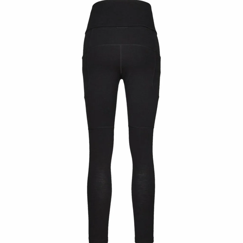 Durch einen hohen Anteil an Merinowolle liegt die Leggings herrlich weich auf der Haut. Hinzu kommen die funktionellen Eigenschaften der Naturfaser. Sie verfügt über einen guten Wärmerückhalt und dank temperaturregulierender Fähigkeiten ein ausgewogenes Klima. An den Oberschenkeln ist das doppelt gelegt Gewebe für besonders hohen Wärmekomfort verantwortlich. Noch dazu nimmt die Wolle viel Feuchtigkeit auf und sorgt für trockenen Komfort, während unangenehme Gerüche von Natur aus nur sehr langsam angenommen werden. Eine Prise Elasthan macht das Gewebe angenehm dehnbar.